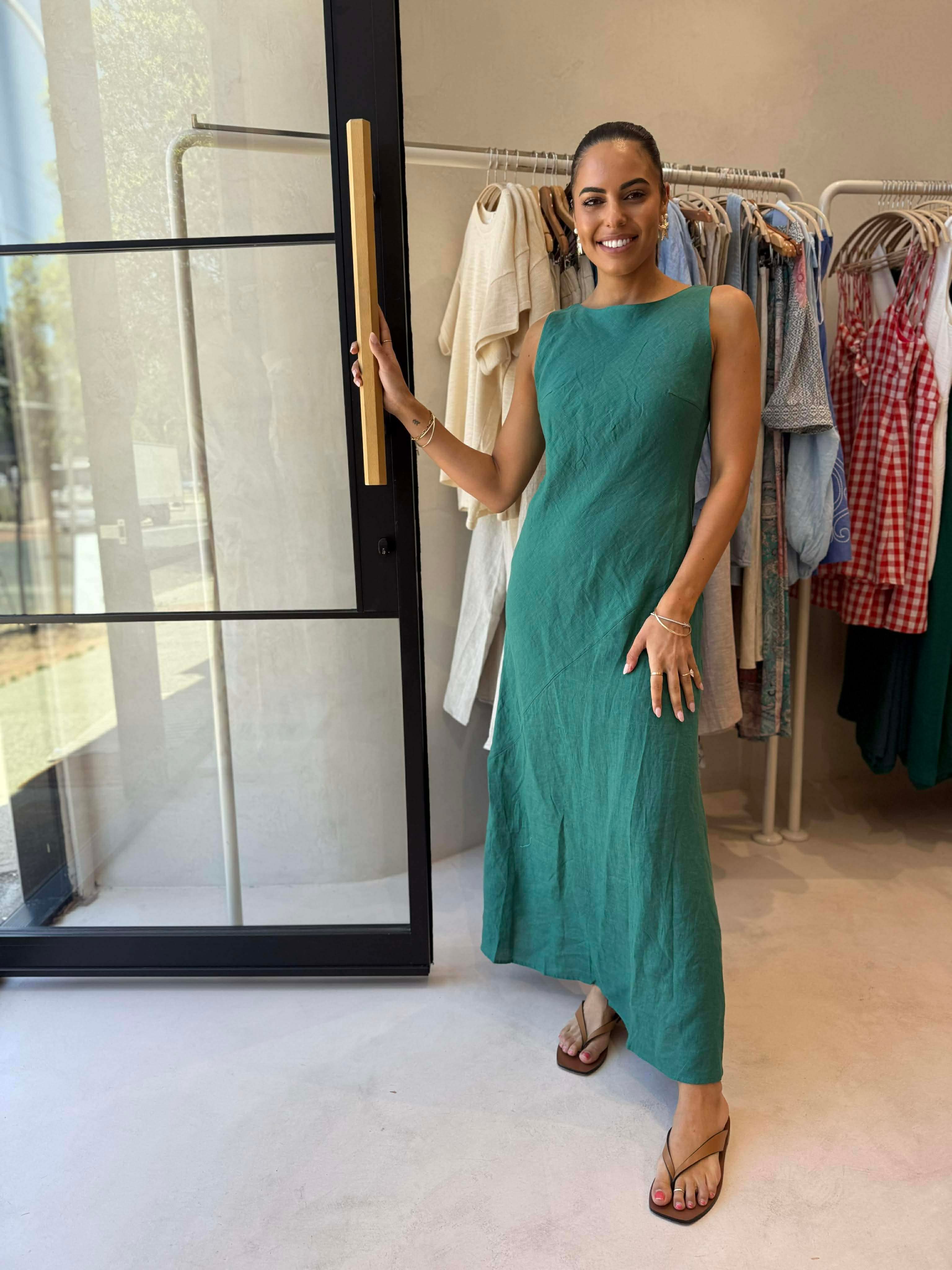 Effortlessly elegant and timeless, the Brandy Maxi is part of our in-house Frankii collection. Crafted from 100% Linen, it features a flattering check design, a sleek invisible back zip, and a scoop V-back for a touch of sophistication. Lined for comfort and quality, this dress combines relaxed style with refined detail.