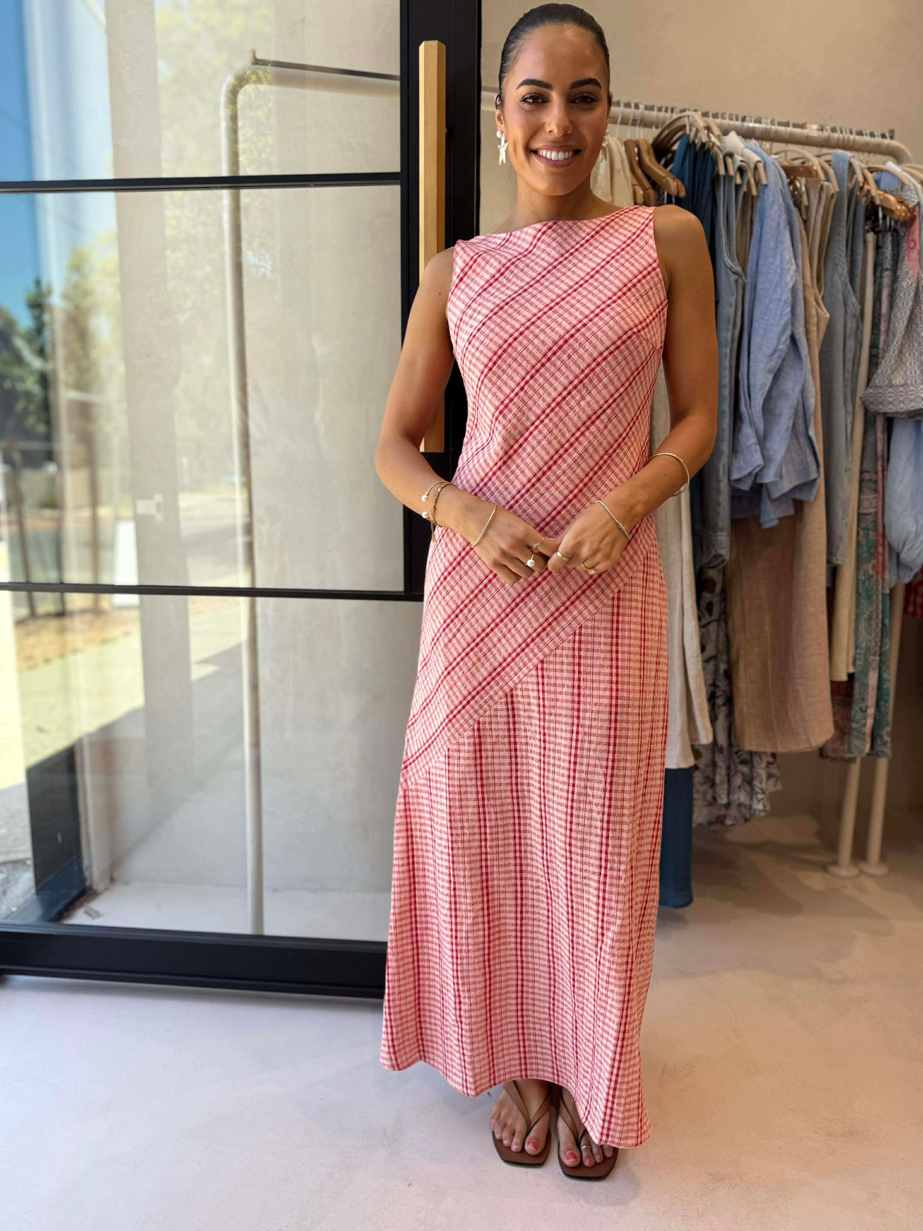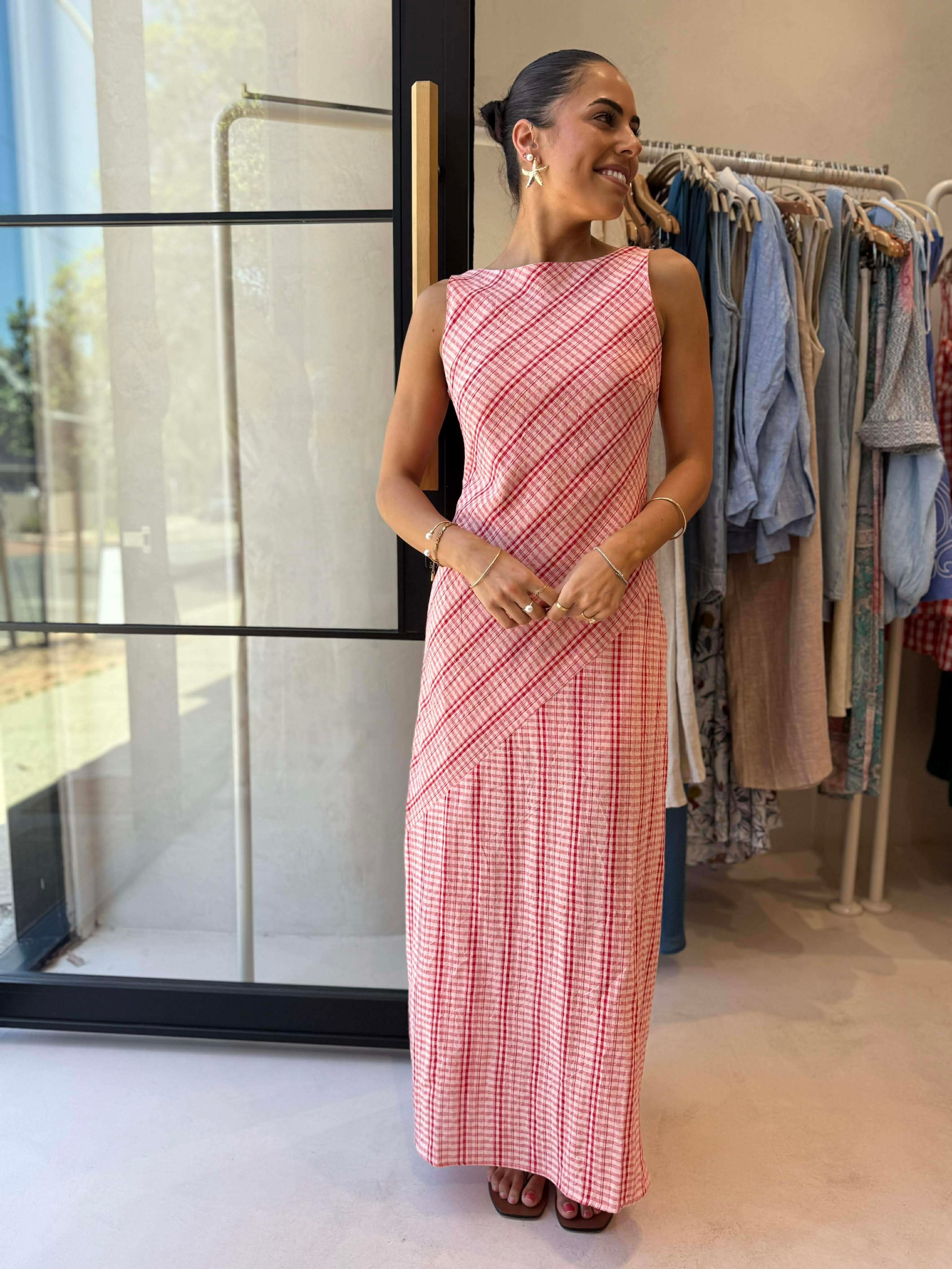 BRANDY MAXI DRESS - PINK CHECK