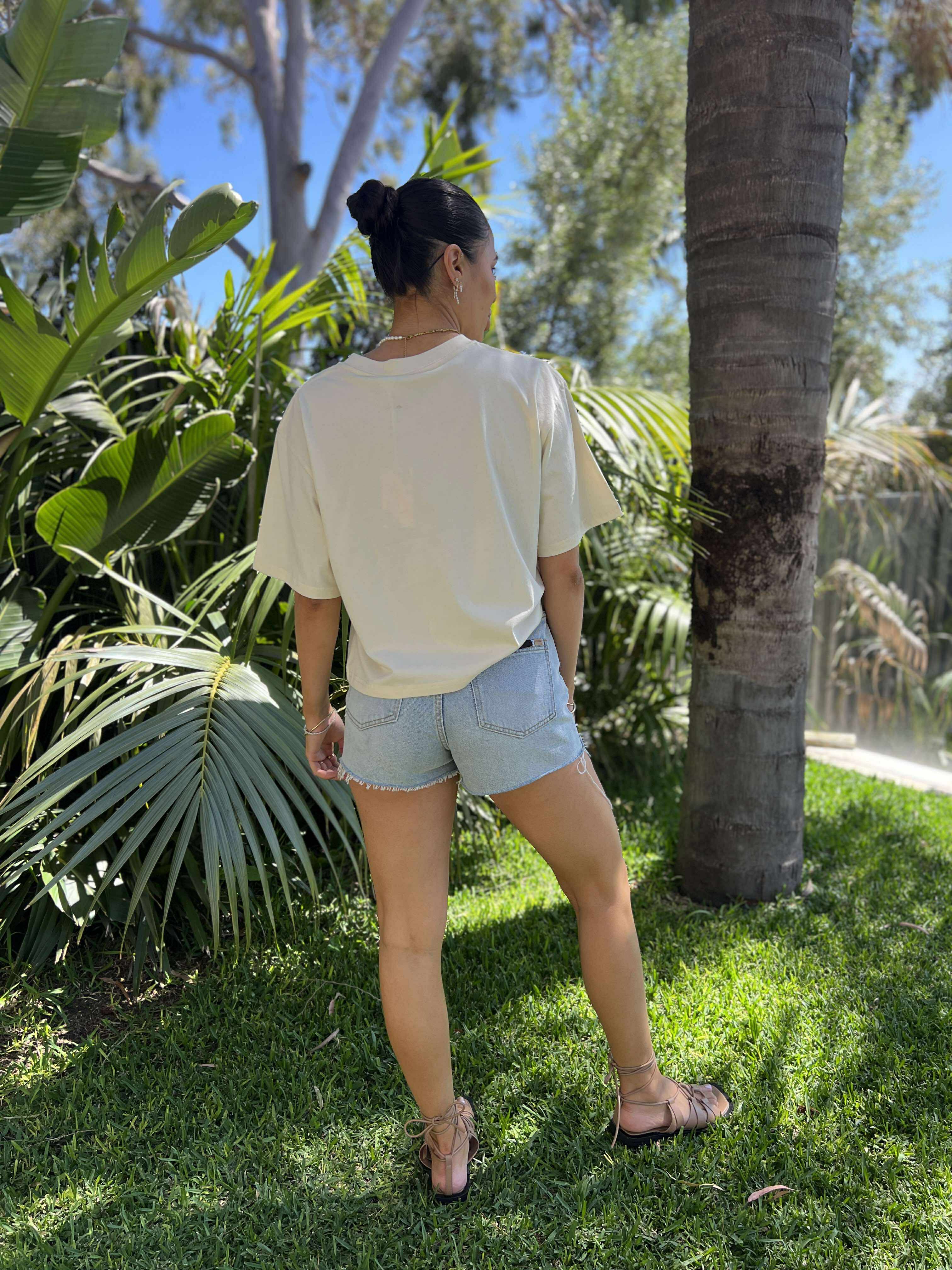 Our cult-favourite oversized tees are crafted from 100% thick cotton, designed to last while offering a buttery-soft hand feel. We recommend choosing your normal size for the perfect fit.