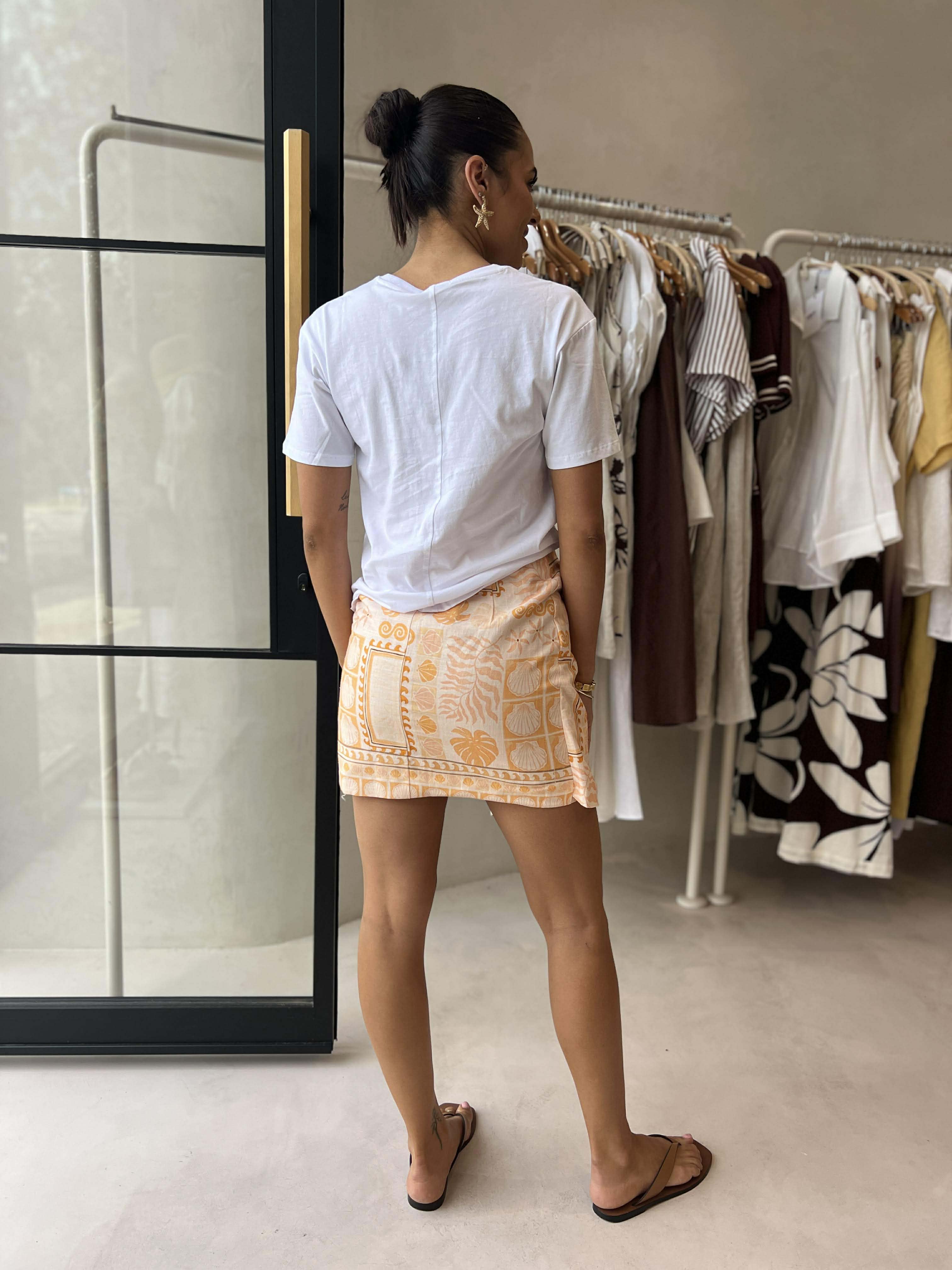 COAST MINI WRAP SKIRT - PEACH SHELL PATCH WORK