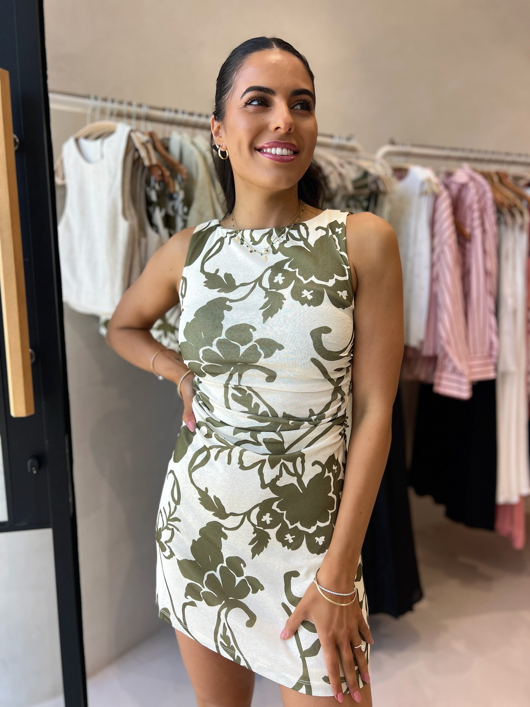 - Ruching at waist