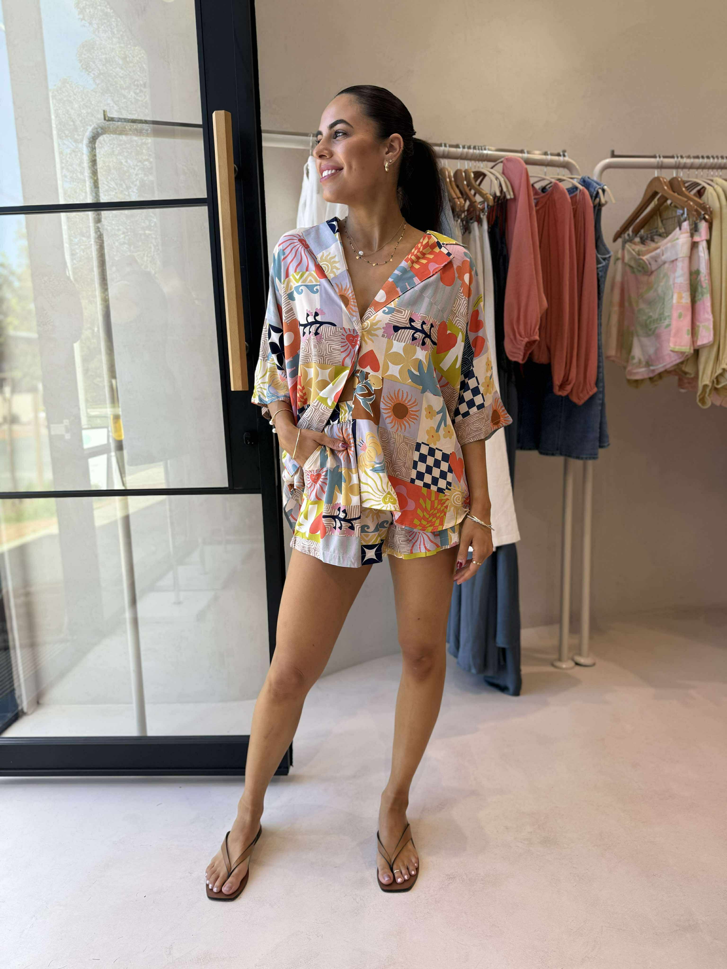 The Daisy Days Shorts are mid-waisted pants feature an elastic waistband and practical pockets for everyday comfort. Made from soft rayon and designed to pair with the matching set, sold separately. Model wears size S.