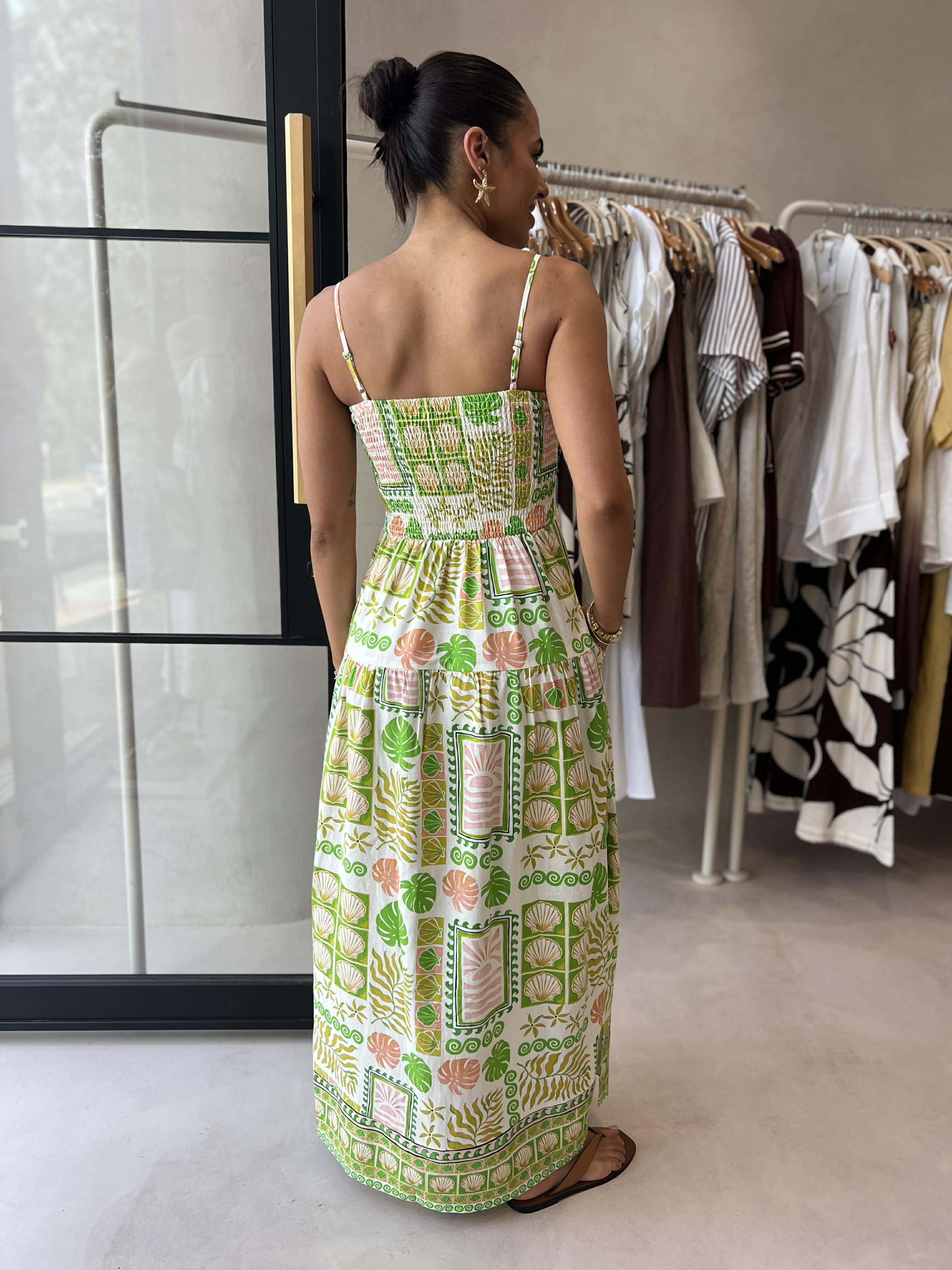 The Emmett Maxi Dress is made for statement summer days. With an exclusive print, ruched bust and shirred back panel, it is equal parts fun and flattering. Pockets make it effortlessly wearable. A feel-good dress that turns heads with ease.