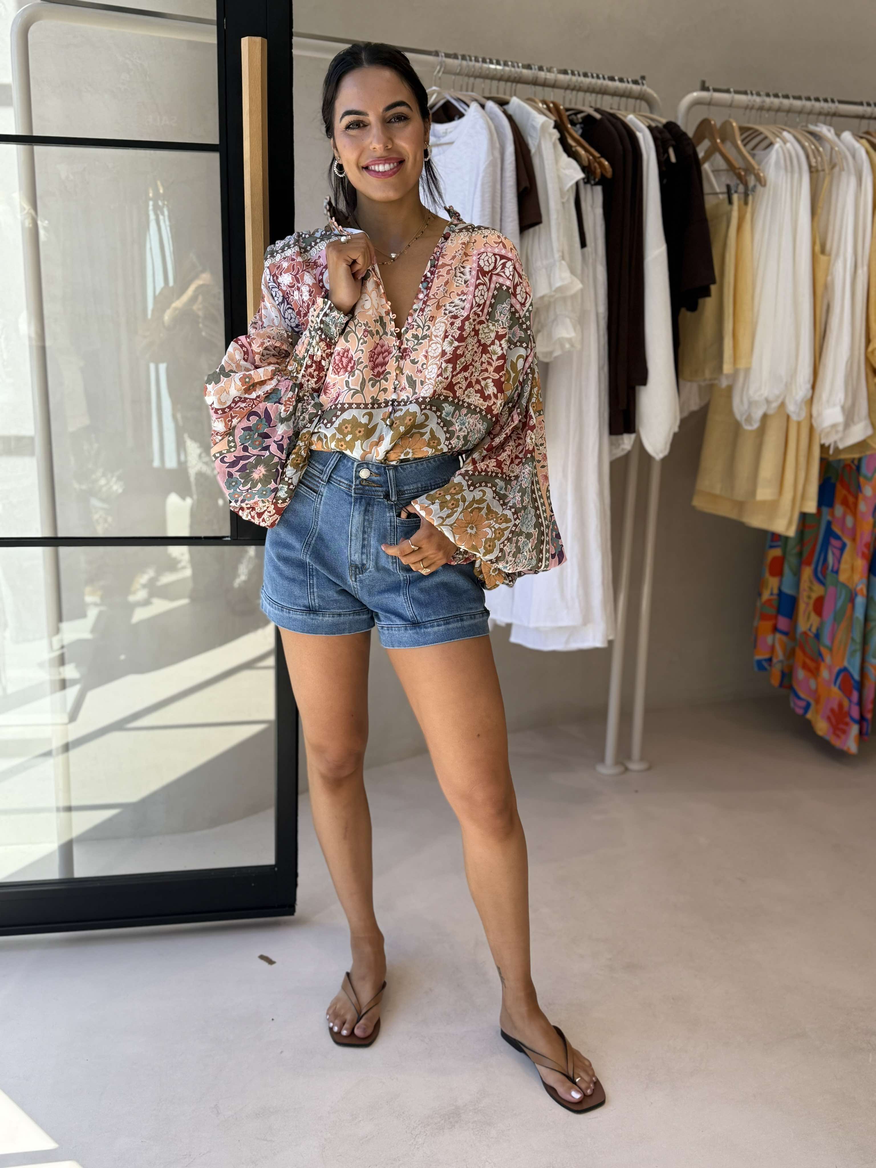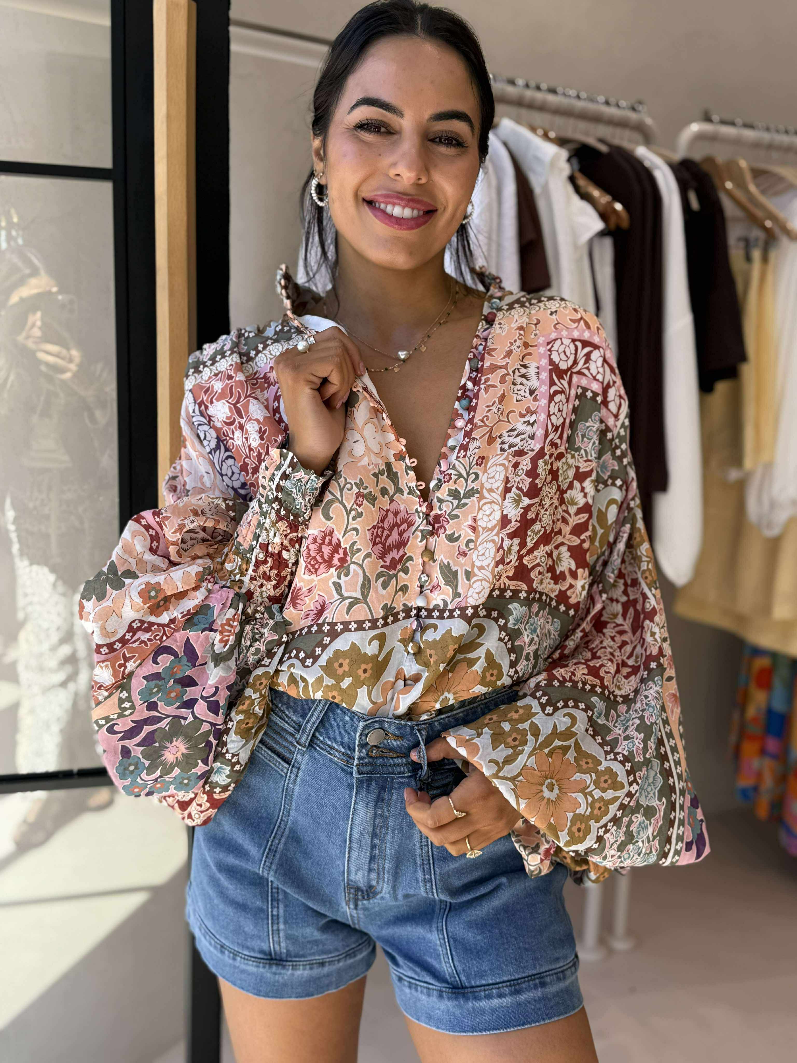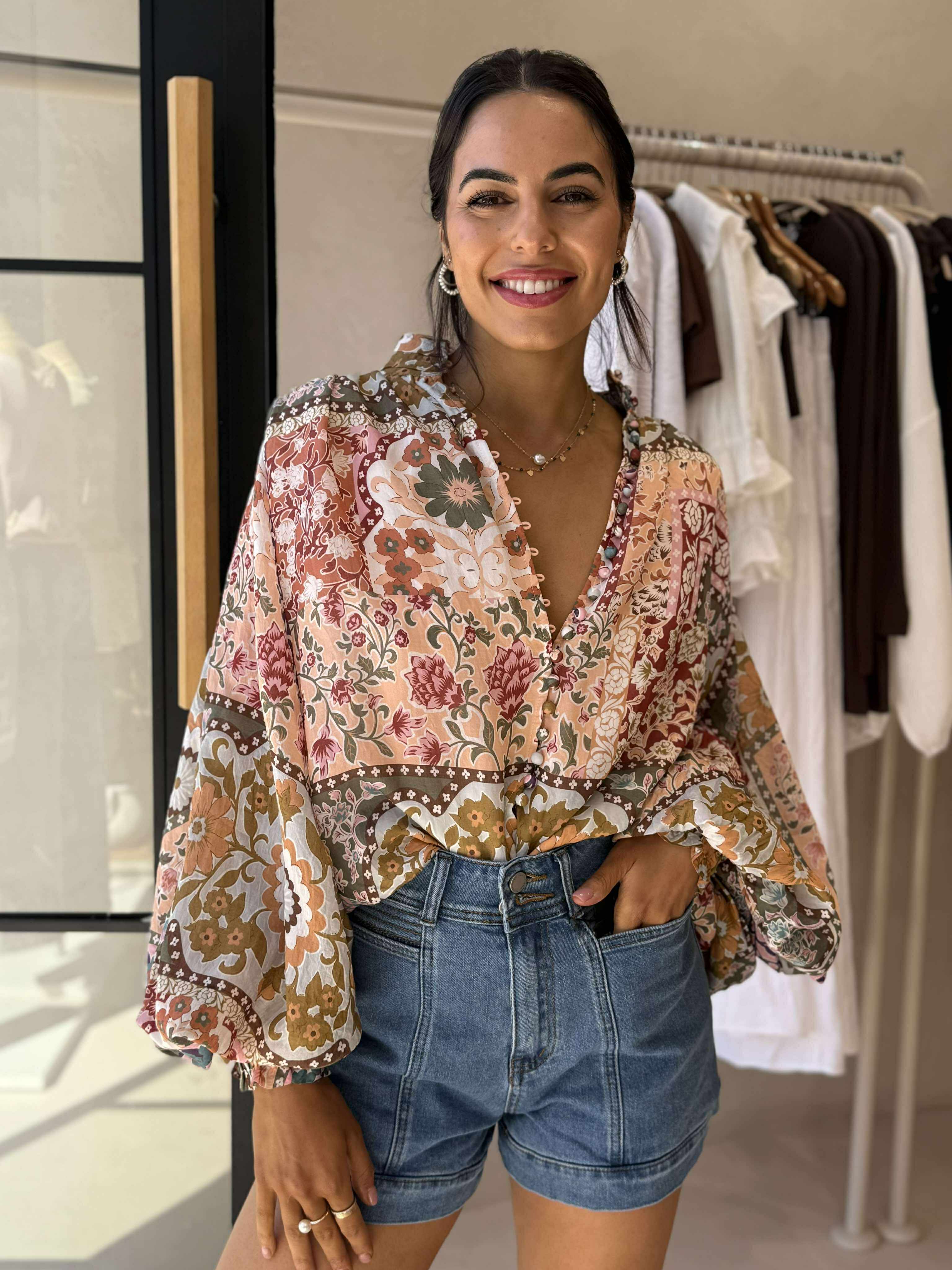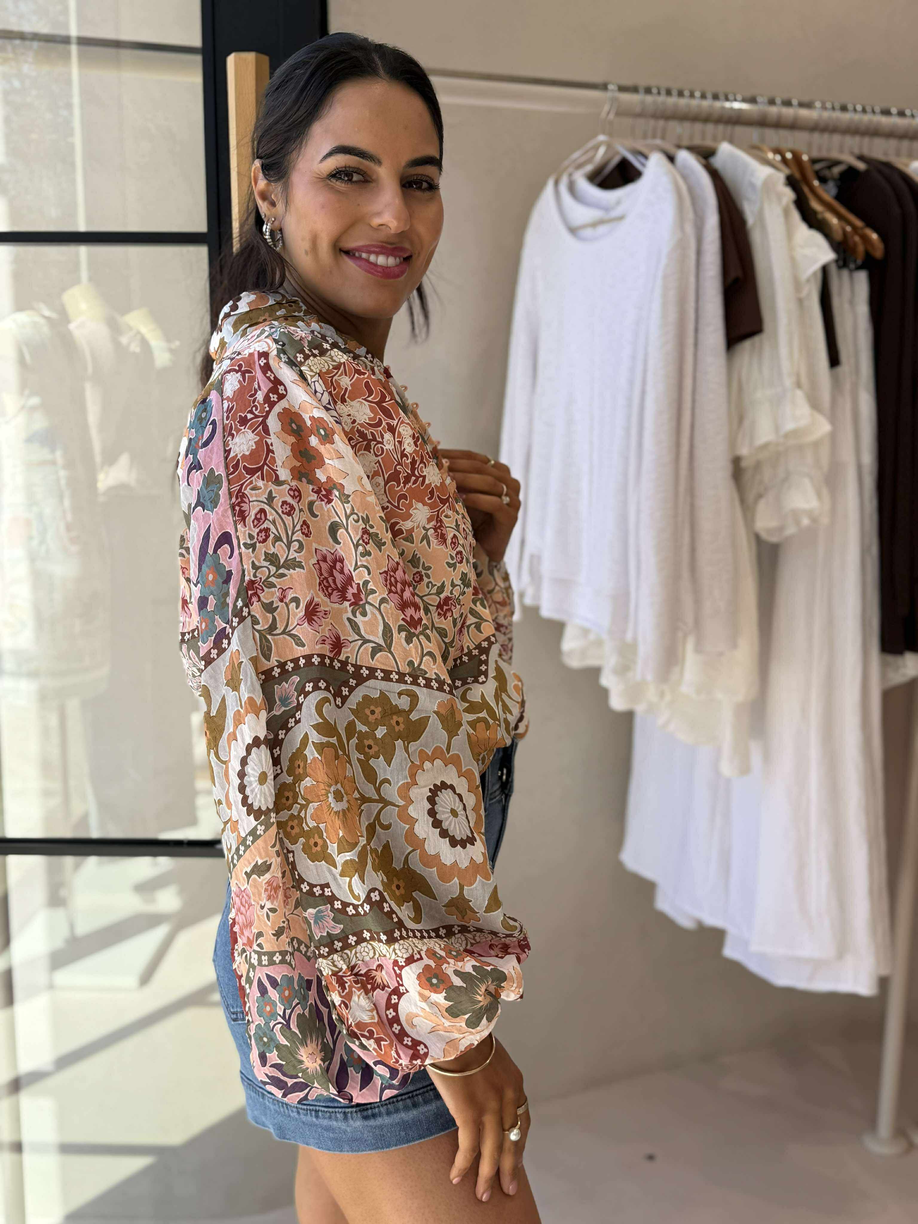 Add a pop of colour to your wardrobe with this stunning blouse featuring a vibrant all-over pattern. Fully lined for comfort, it’s designed with a button-up front and lovely loose sleeves finished with gathered, elasticated cuffs. Easy to style – tuck it in for a polished look or leave it out for relaxed elegance.
