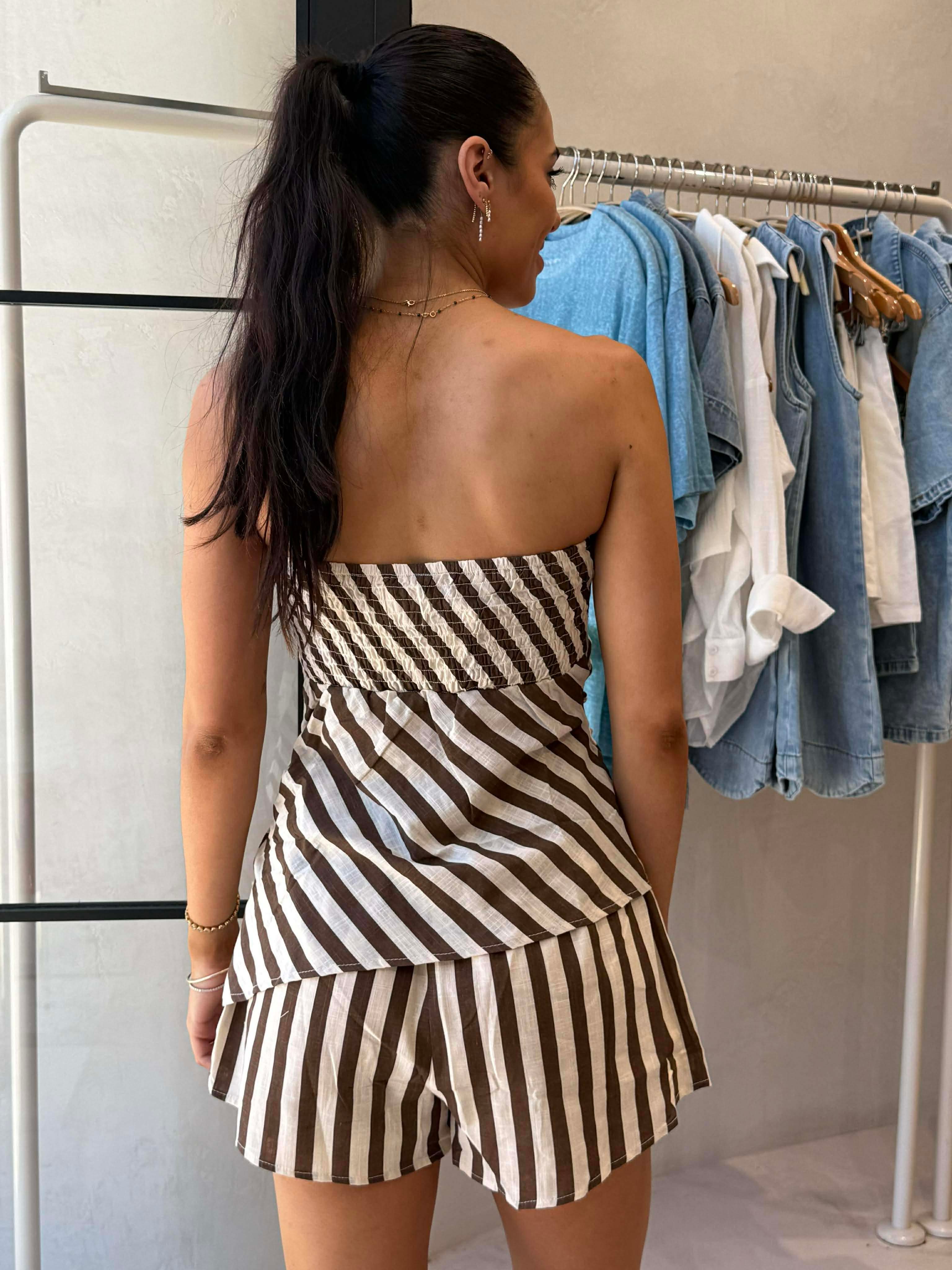 - TOP: Shirred Back / Strapless / A line / Invisible side zip / gathered side