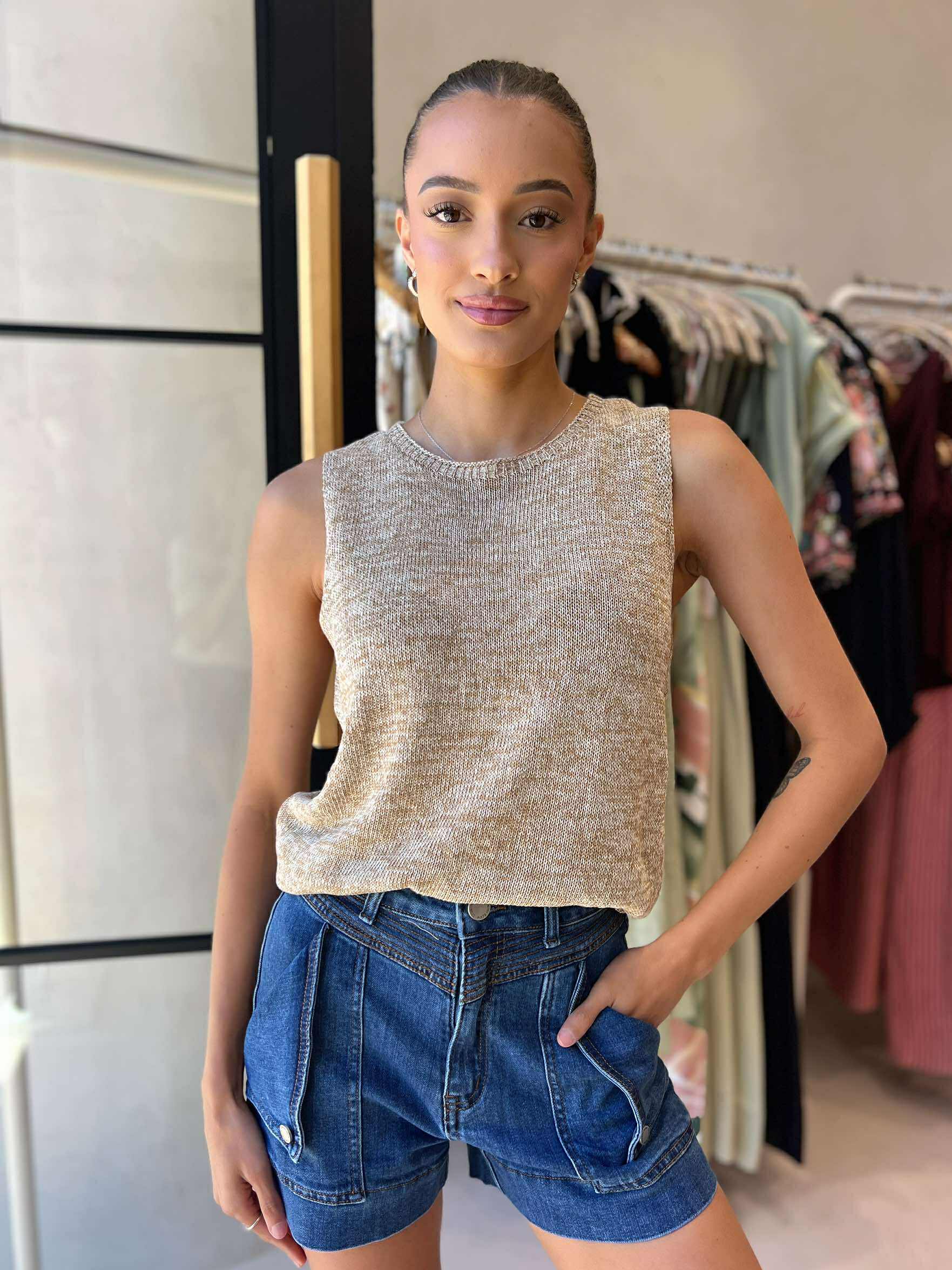 MELANGE SPRING TOP- TAN