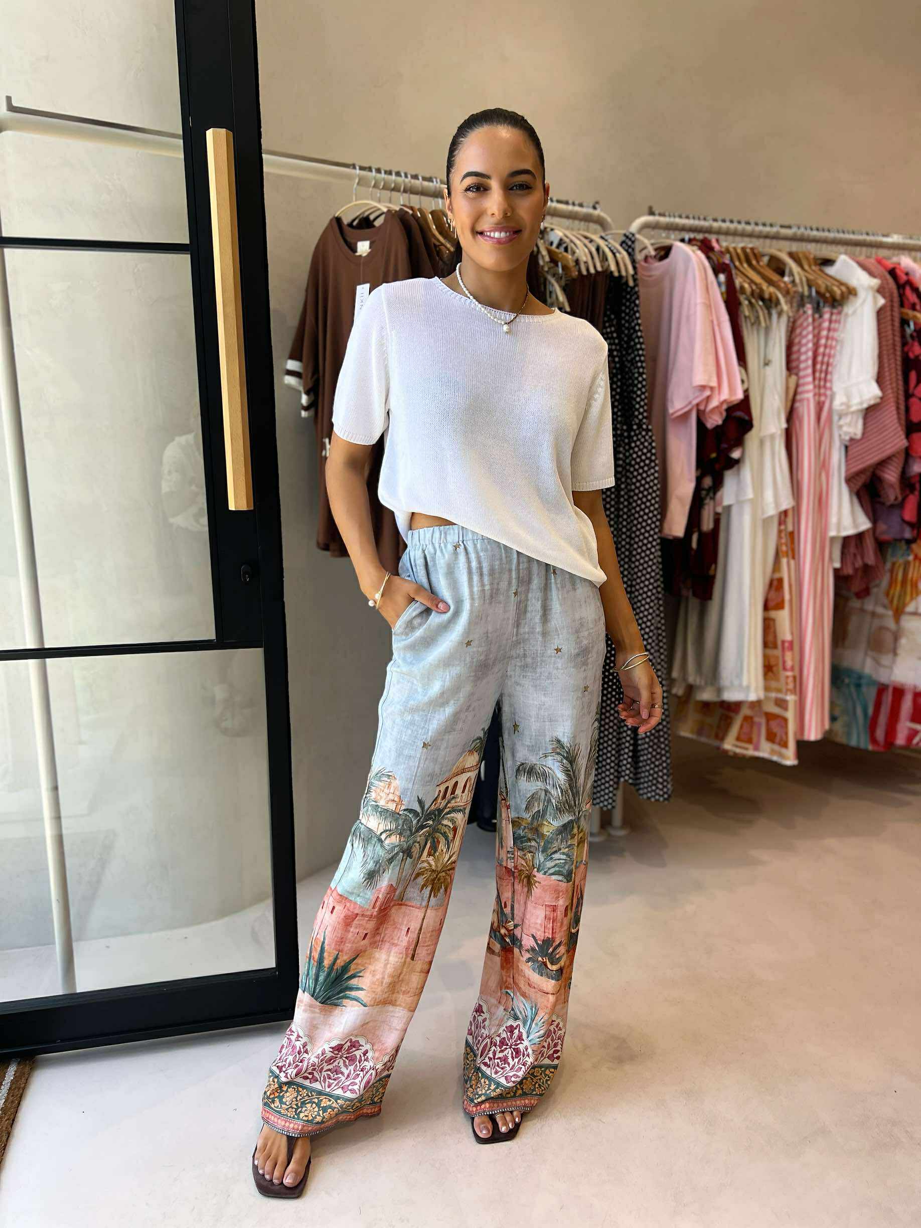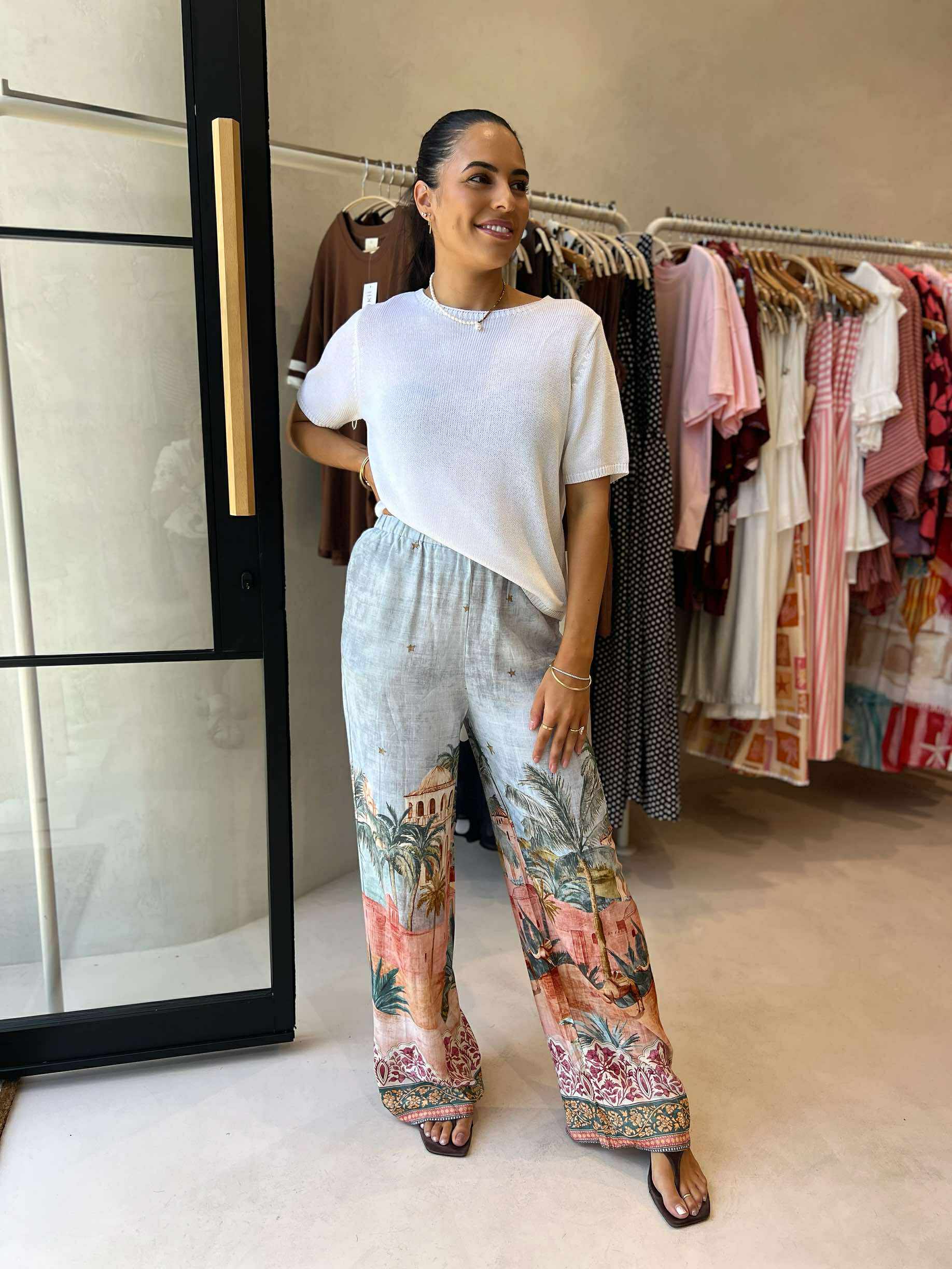 Step into laid-back style with these relaxed-fit pants featuring stunning desert and palm graphics. Designed for comfort with an elasticated waistband and handy side pockets, they’re perfect for easy everyday wear with a touch of tropical flair.