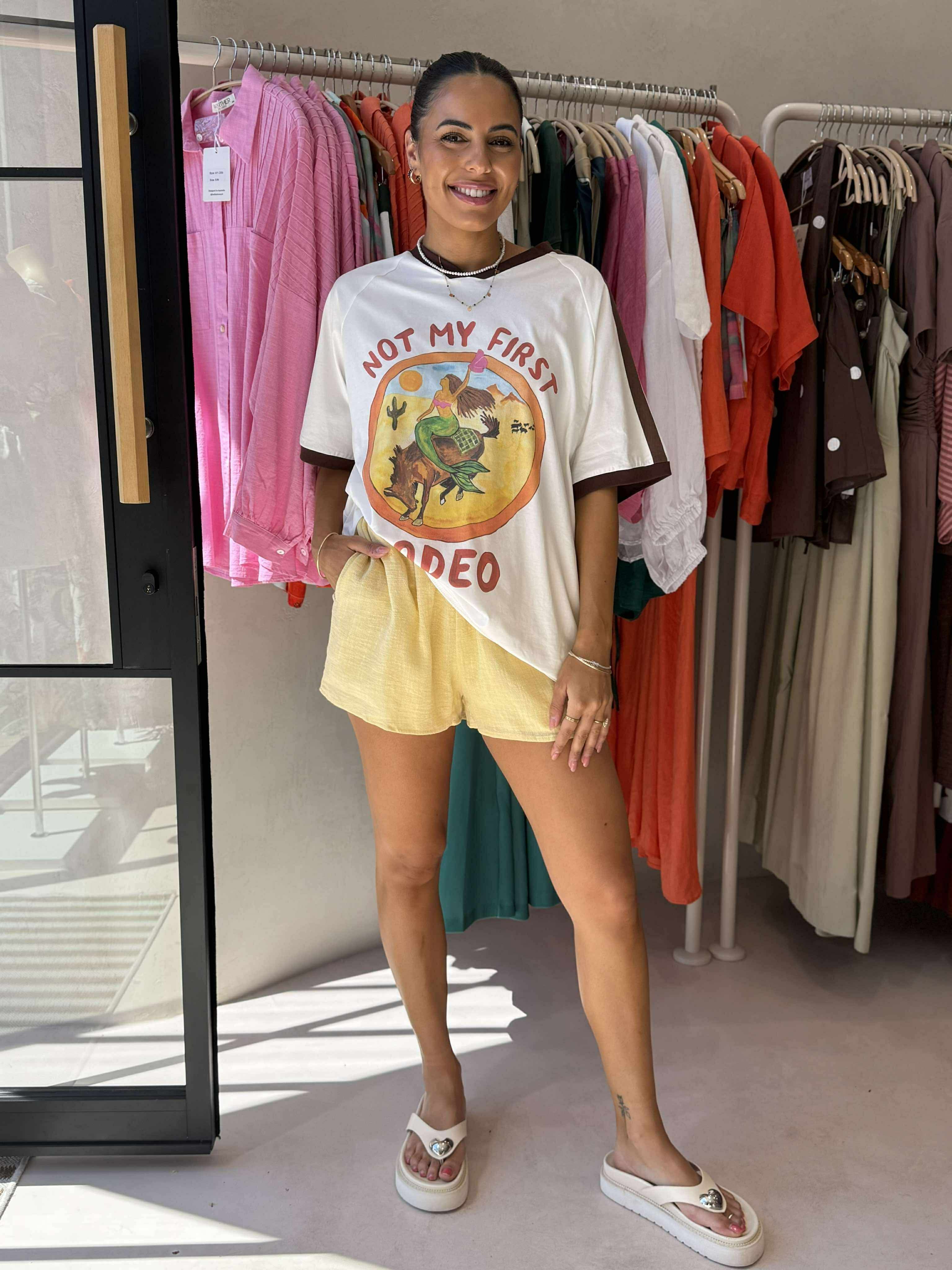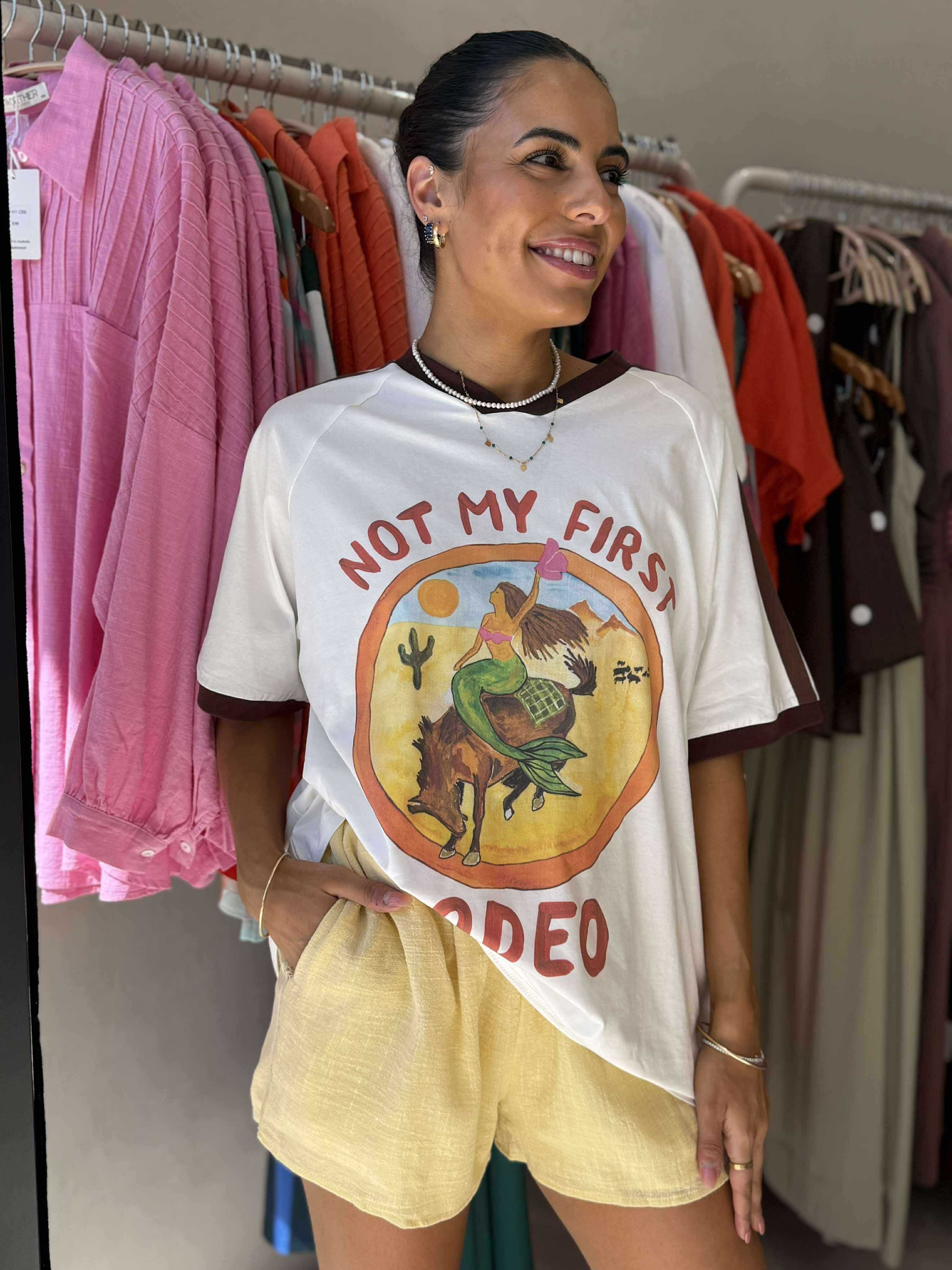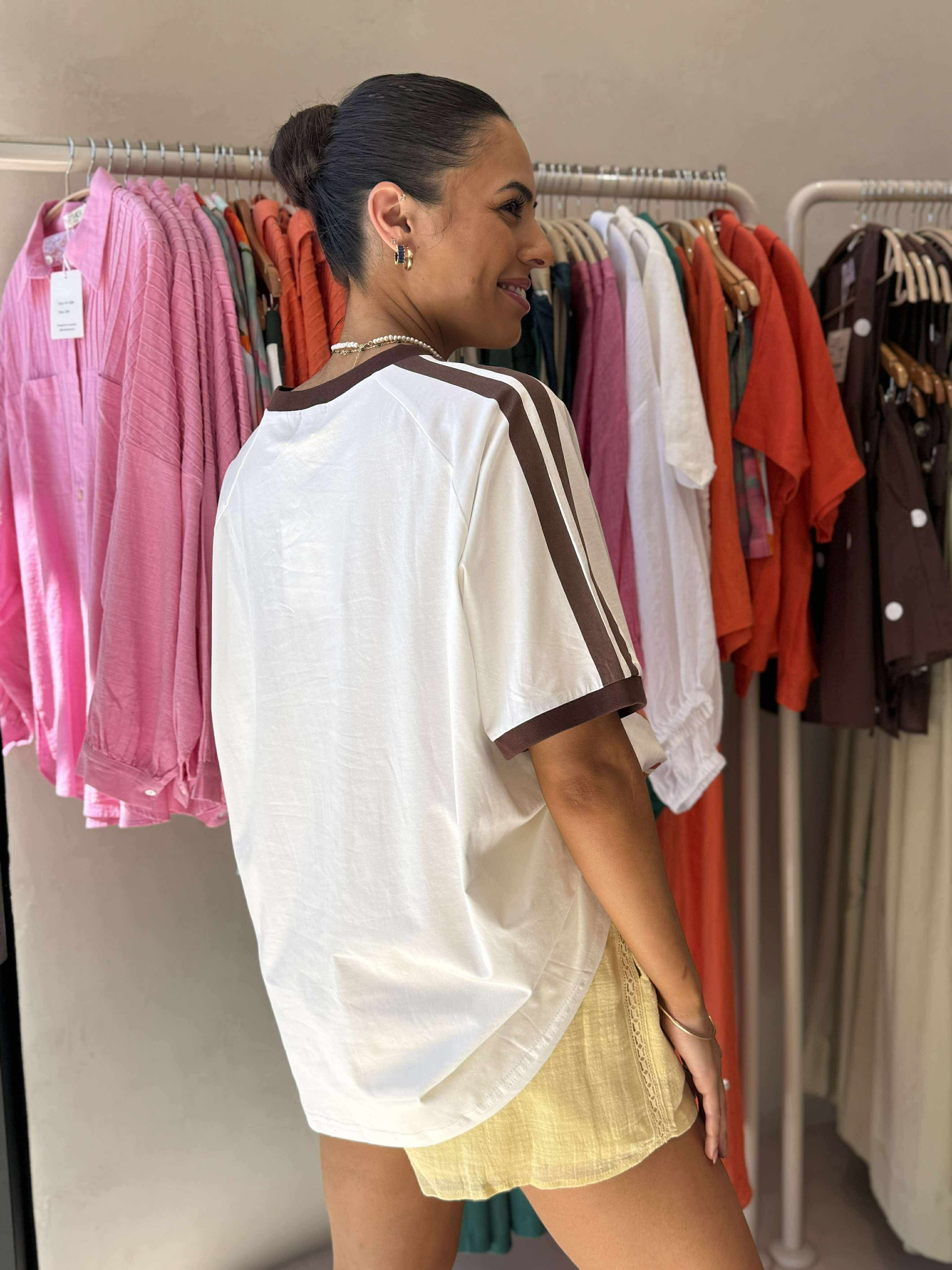 Made from 100% cotton, this comfy oversized tee features a playful graphic on the front and eye-catching contrast details with a chocolate brown collar. The soft white base is perfect for laid-back, everyday style.