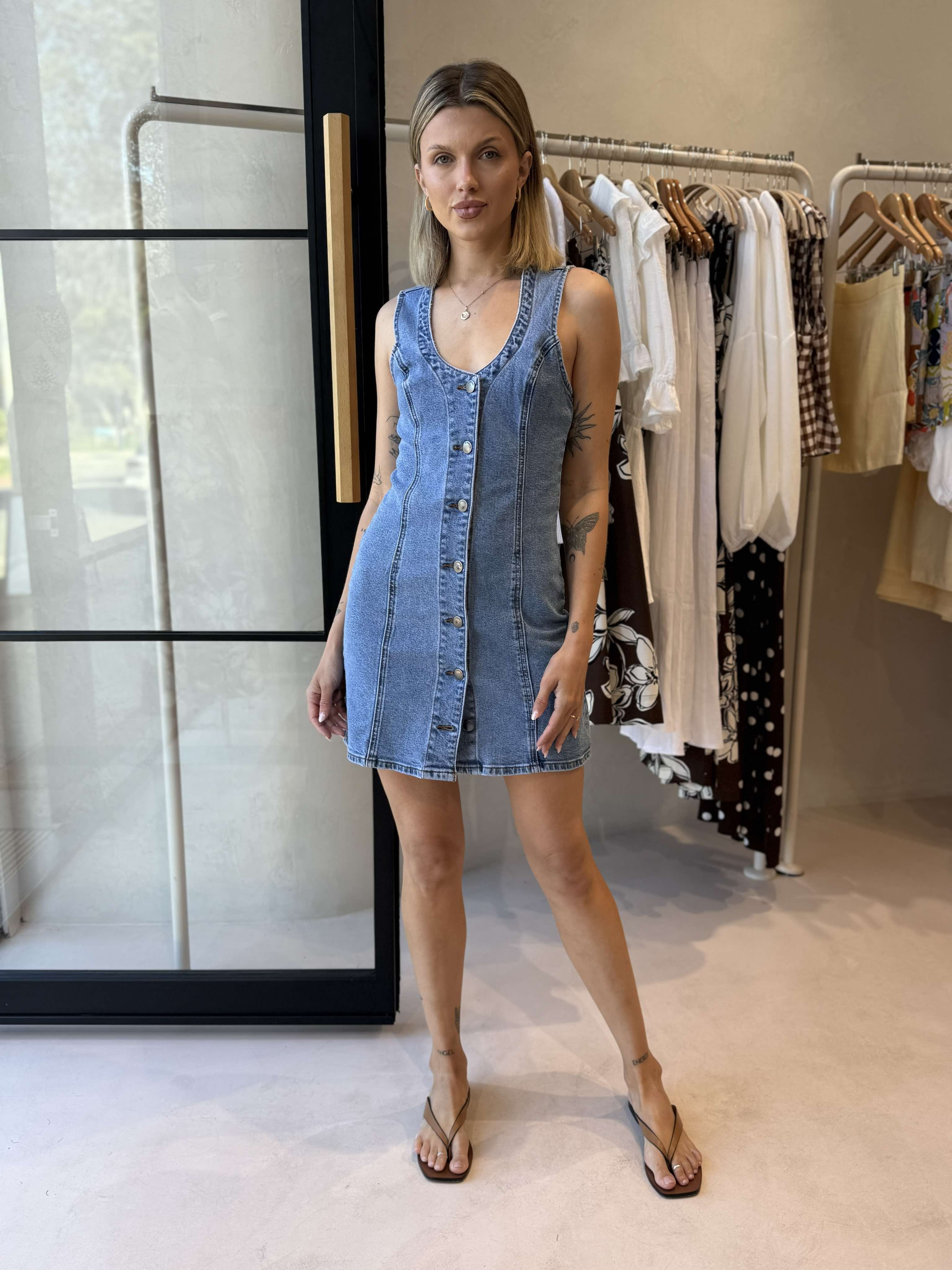 The Peta Mini Dress is a chic and versatile wardrobe staple that combines the timeless appeal of denim with a flattering, modern silhouette. Featuring a fitted design that accentuates your shape, this mini dress offers a sleek, casual look perfect for day-to-night wear. With classic button-down details, it pairs effortlessly with sneakers, boots, or sandals. Whether layered with a jacket or worn on its own, the Peta Mini Dress is the perfect piece for adding a touch of cool, effortless style to your collection.