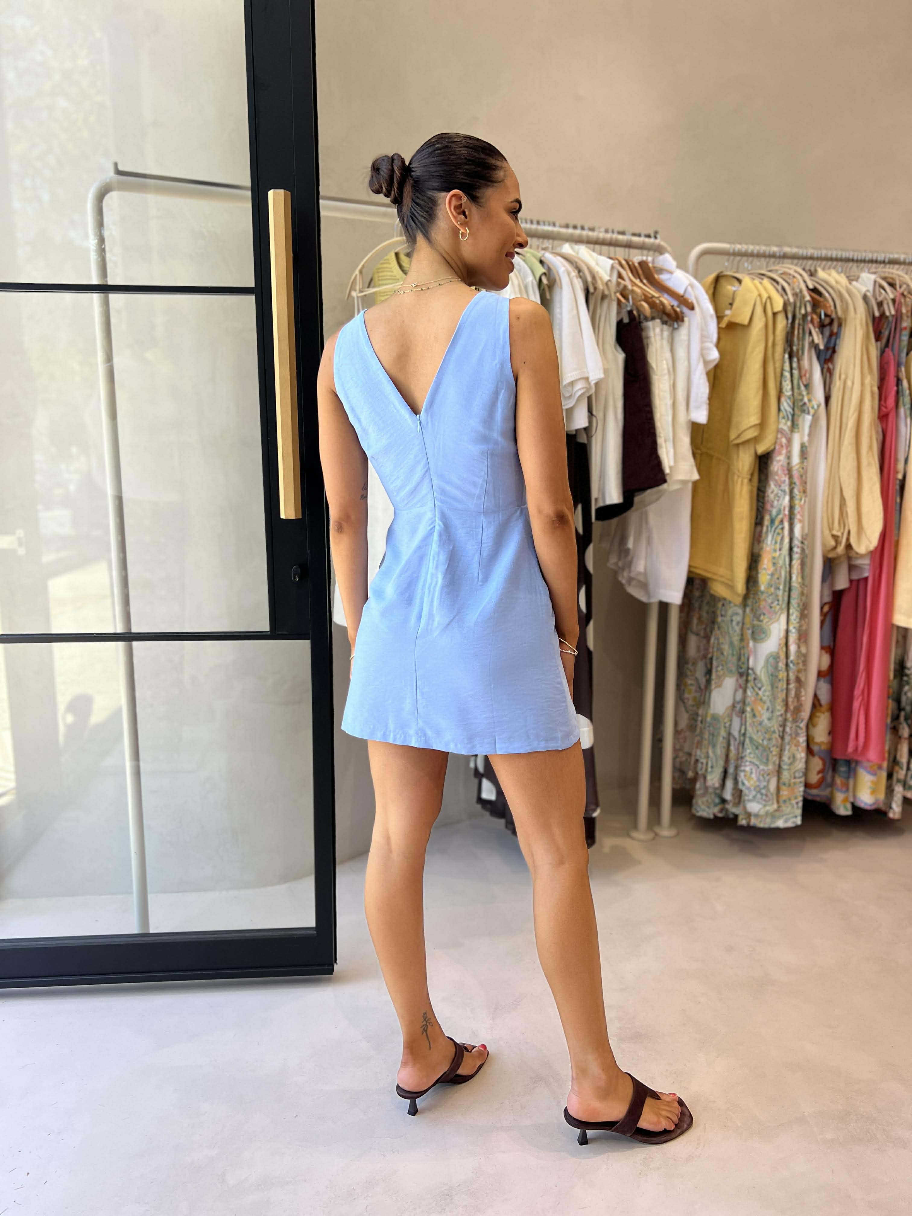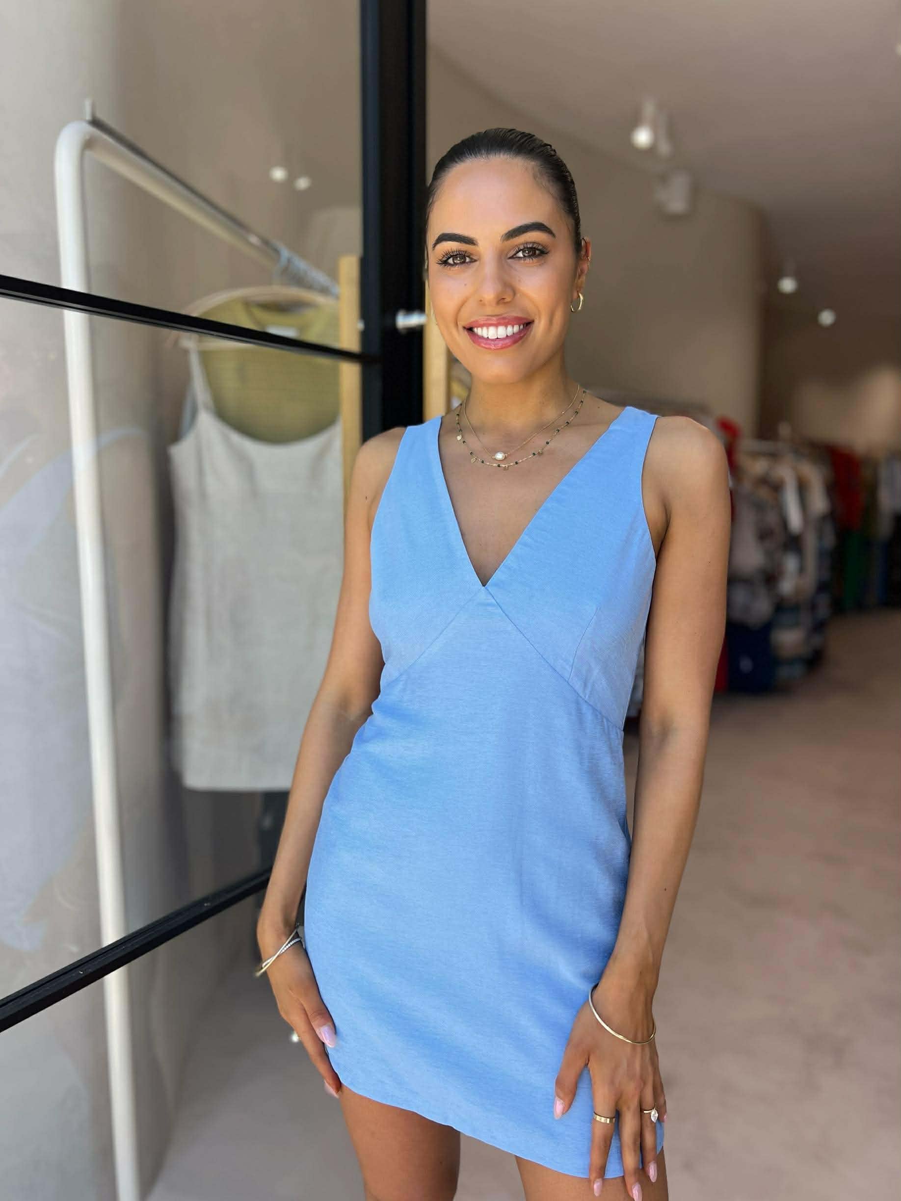The Sabine Dress offers understated elegance with its flattering V-neckline and mini-length silhouette. An Ezra Blu exclusive to Frankii Clothing, it is crafted from soft rayon/nylon and fully lined for comfort. Finished with an invisible back zip, this versatile piece is perfect for day-to-night styling.