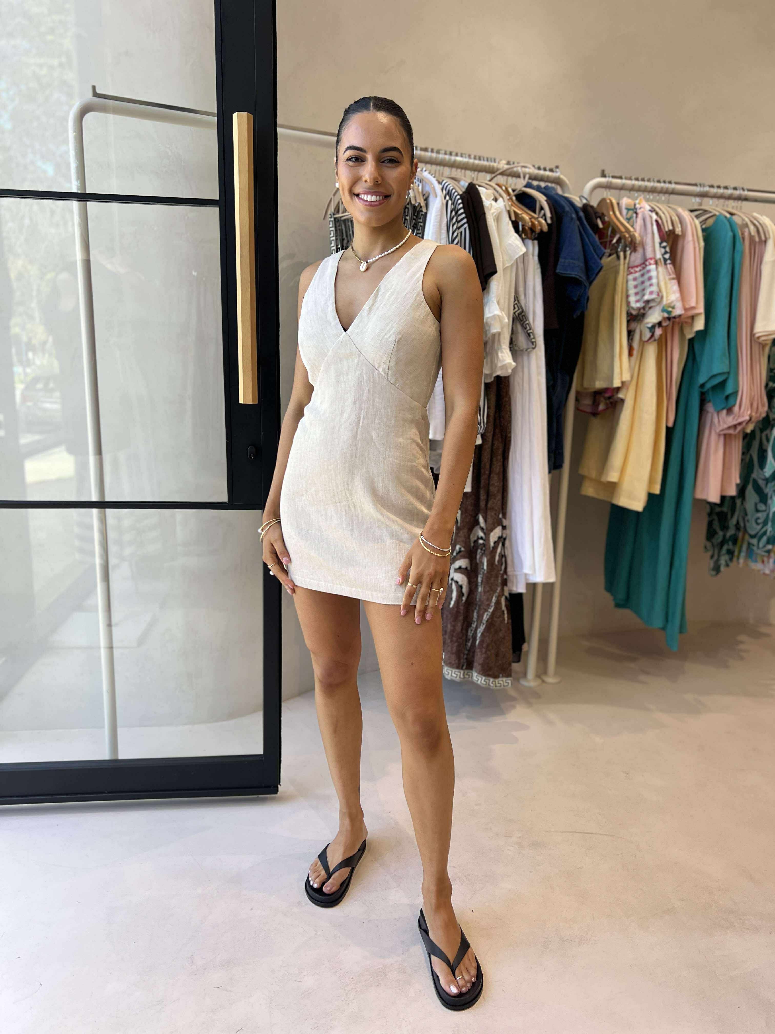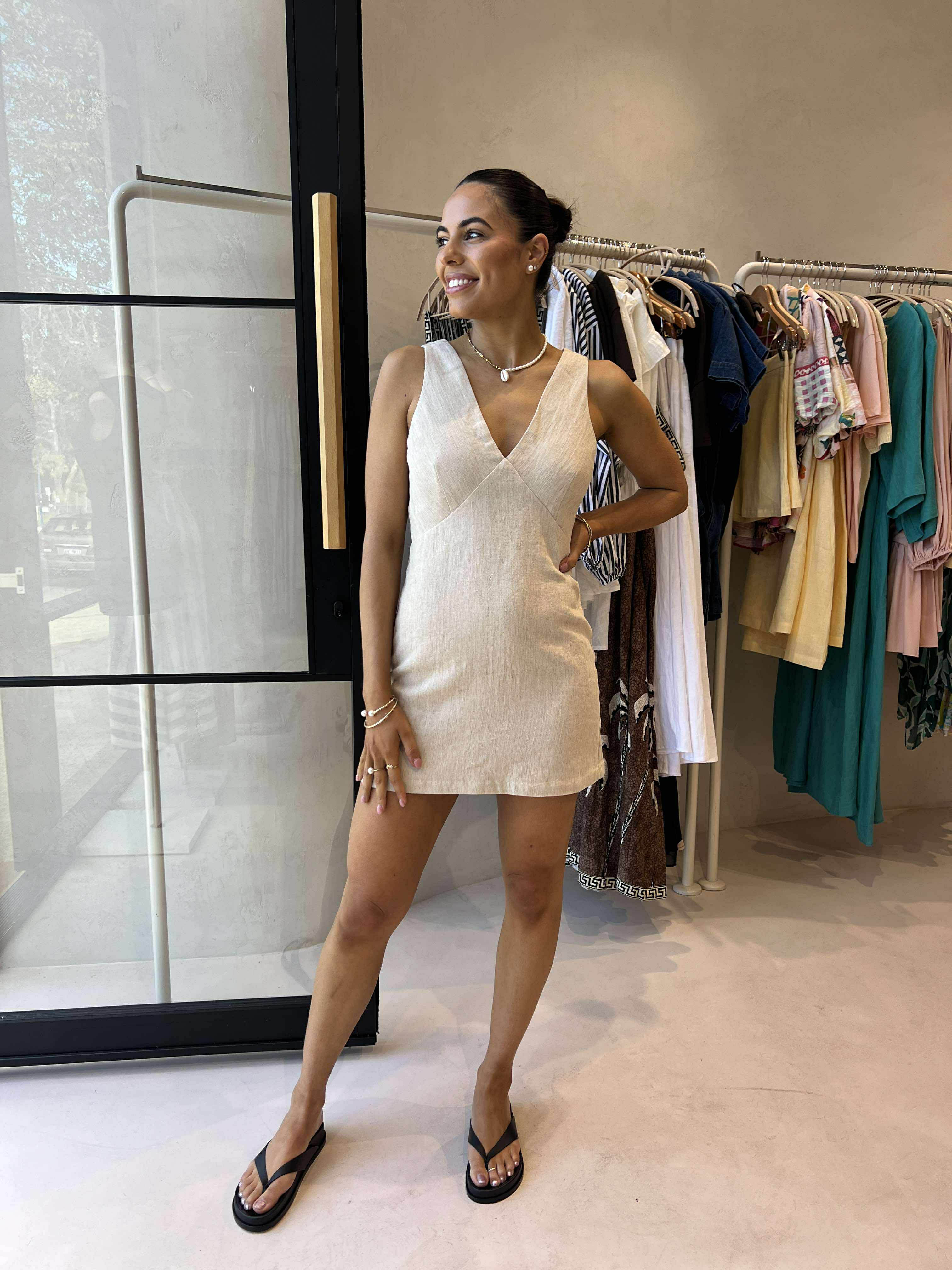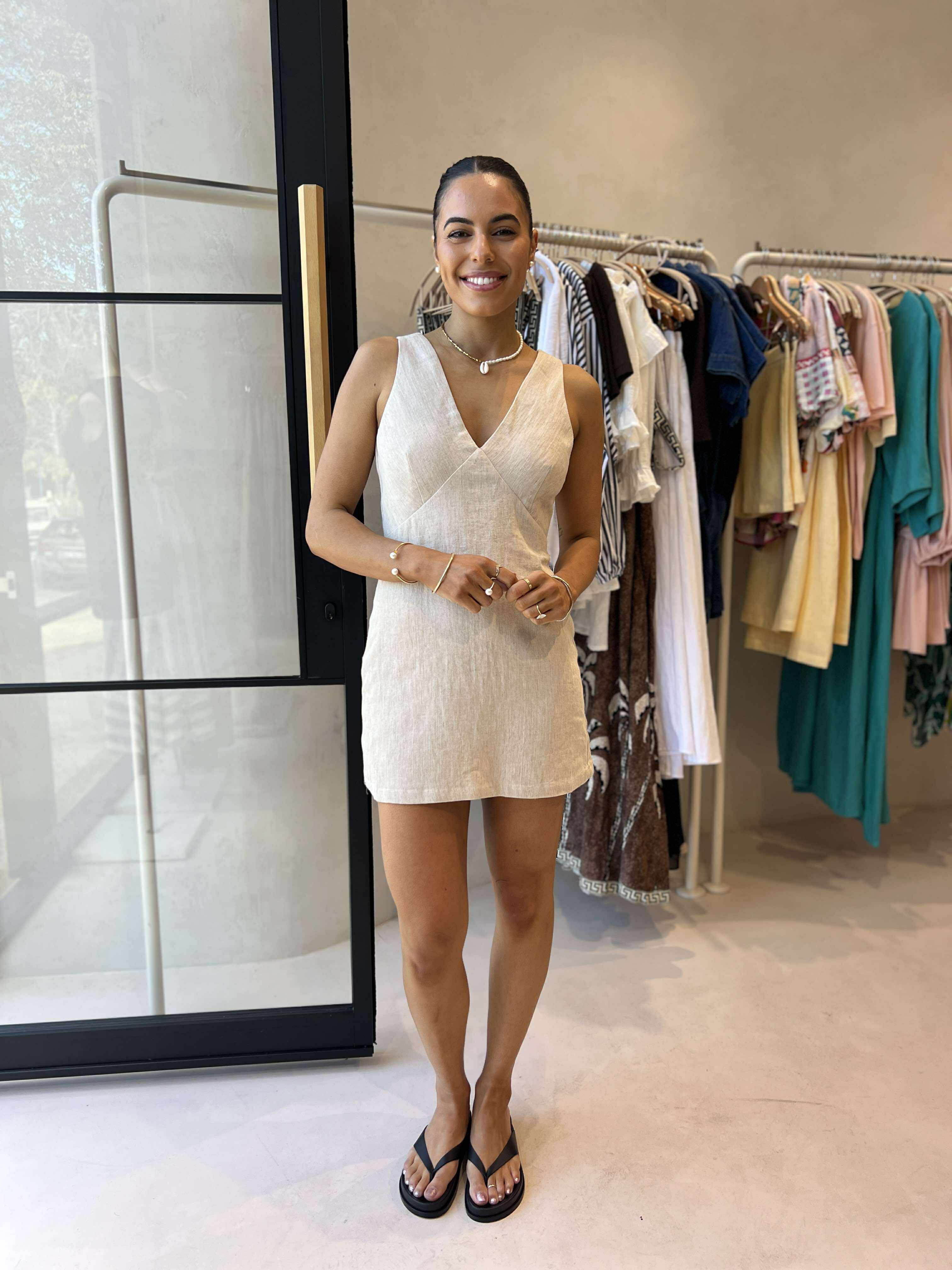 The Sabine Dress offers understated elegance with its flattering V-neckline and mini-length silhouette. An Ezra Blu exclusive to Frankii Clothing, it’s crafted from soft rayon and fully lined for comfort. Finished with an invisible back zip, this versatile piece is perfect for day-to-night styling.