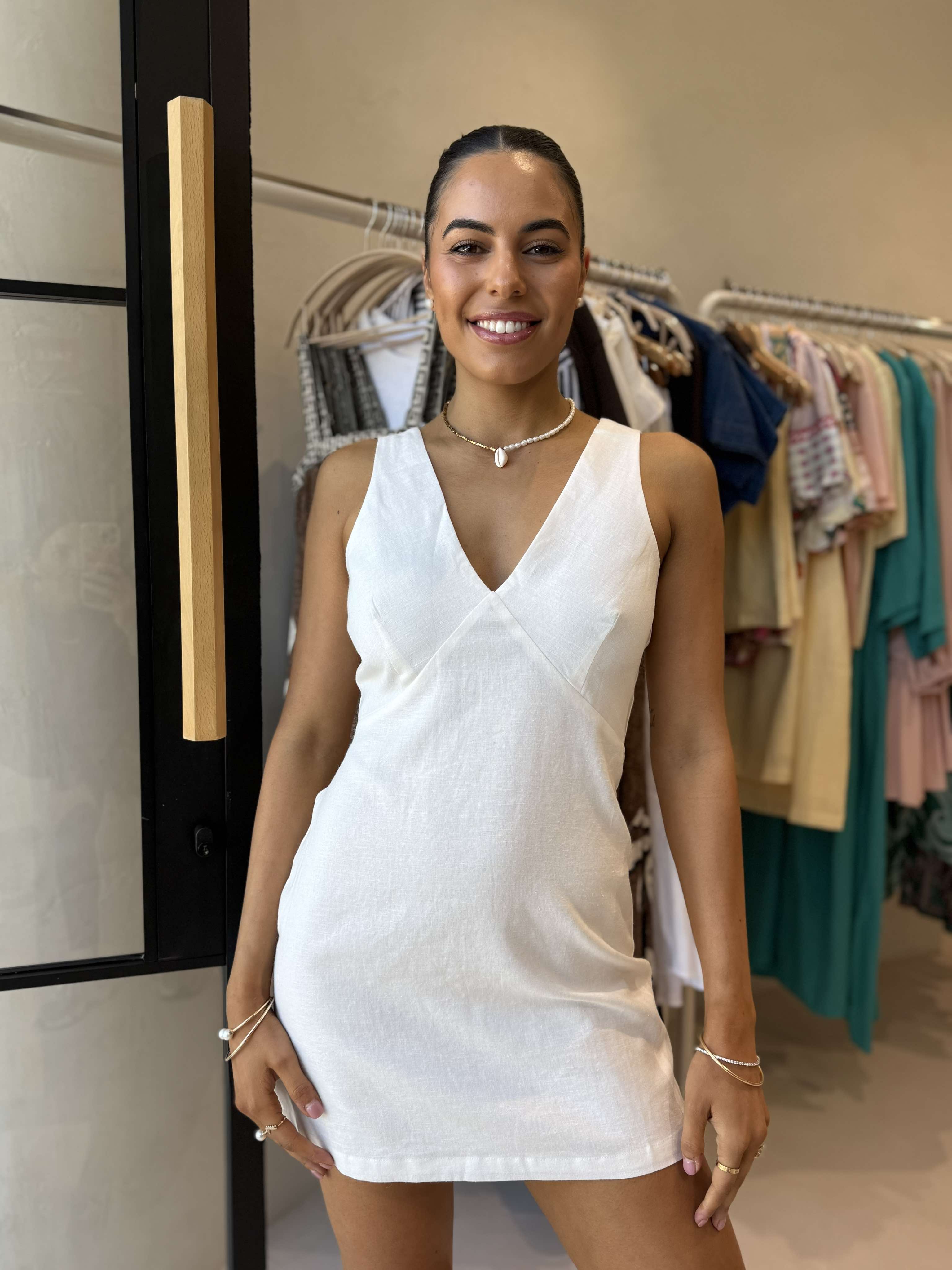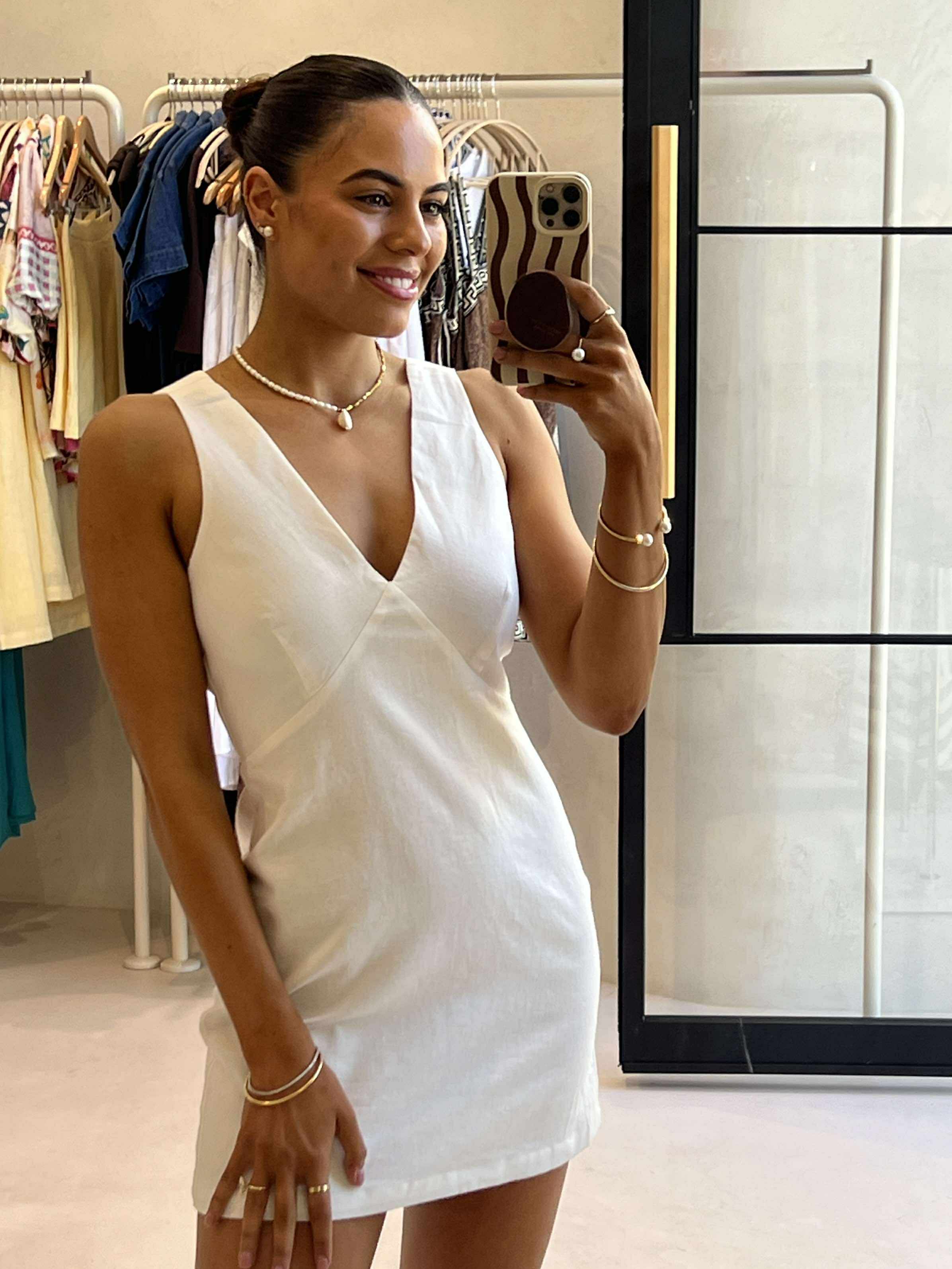 The Sabine Dress offers understated elegance with its flattering V-neckline and mini-length silhouette. An Ezra Blu exclusive to Frankii Clothing, it’s crafted from soft rayon and fully lined for comfort. Finished with an invisible back zip, this versatile piece is perfect for day-to-night styling.