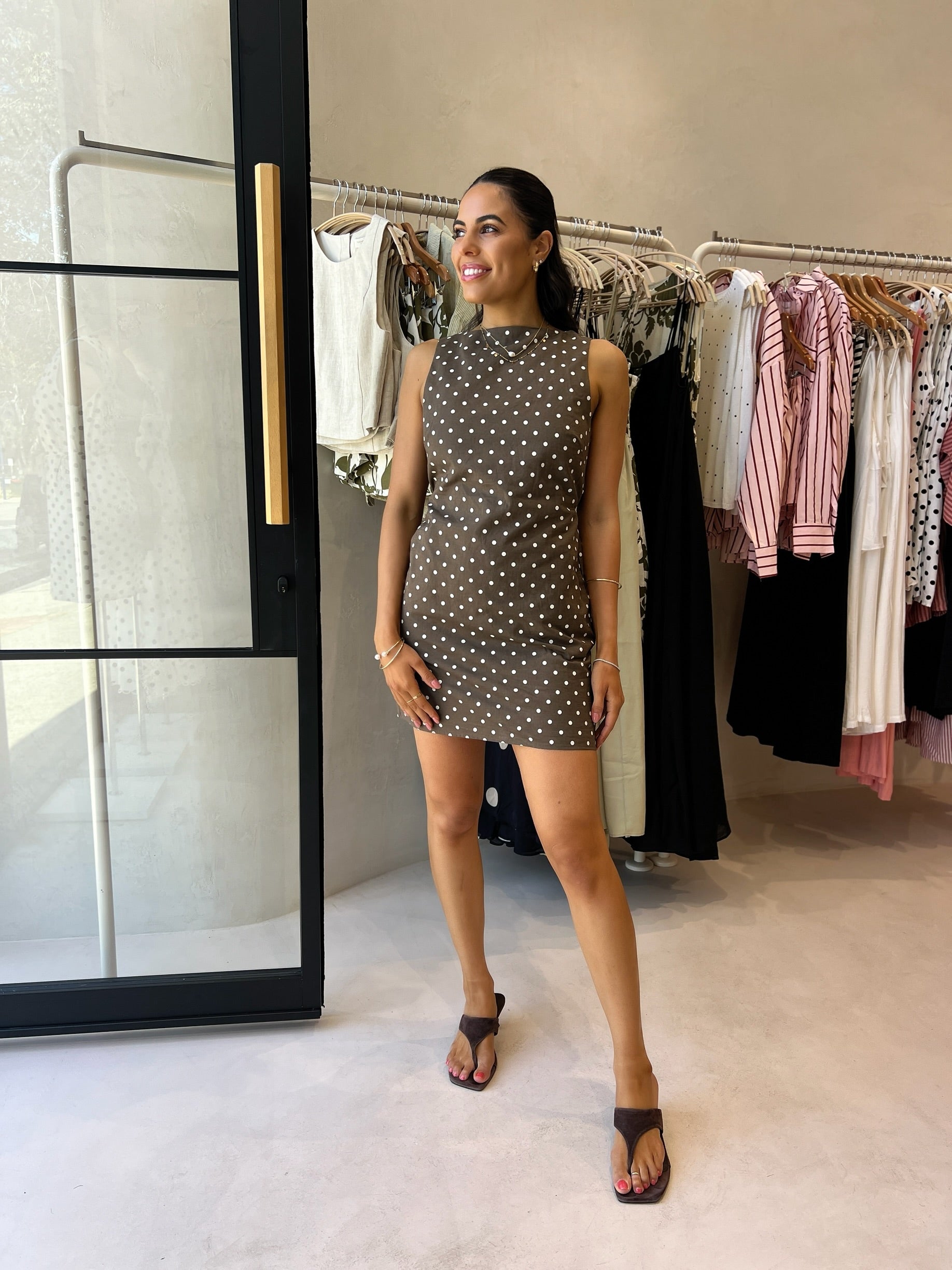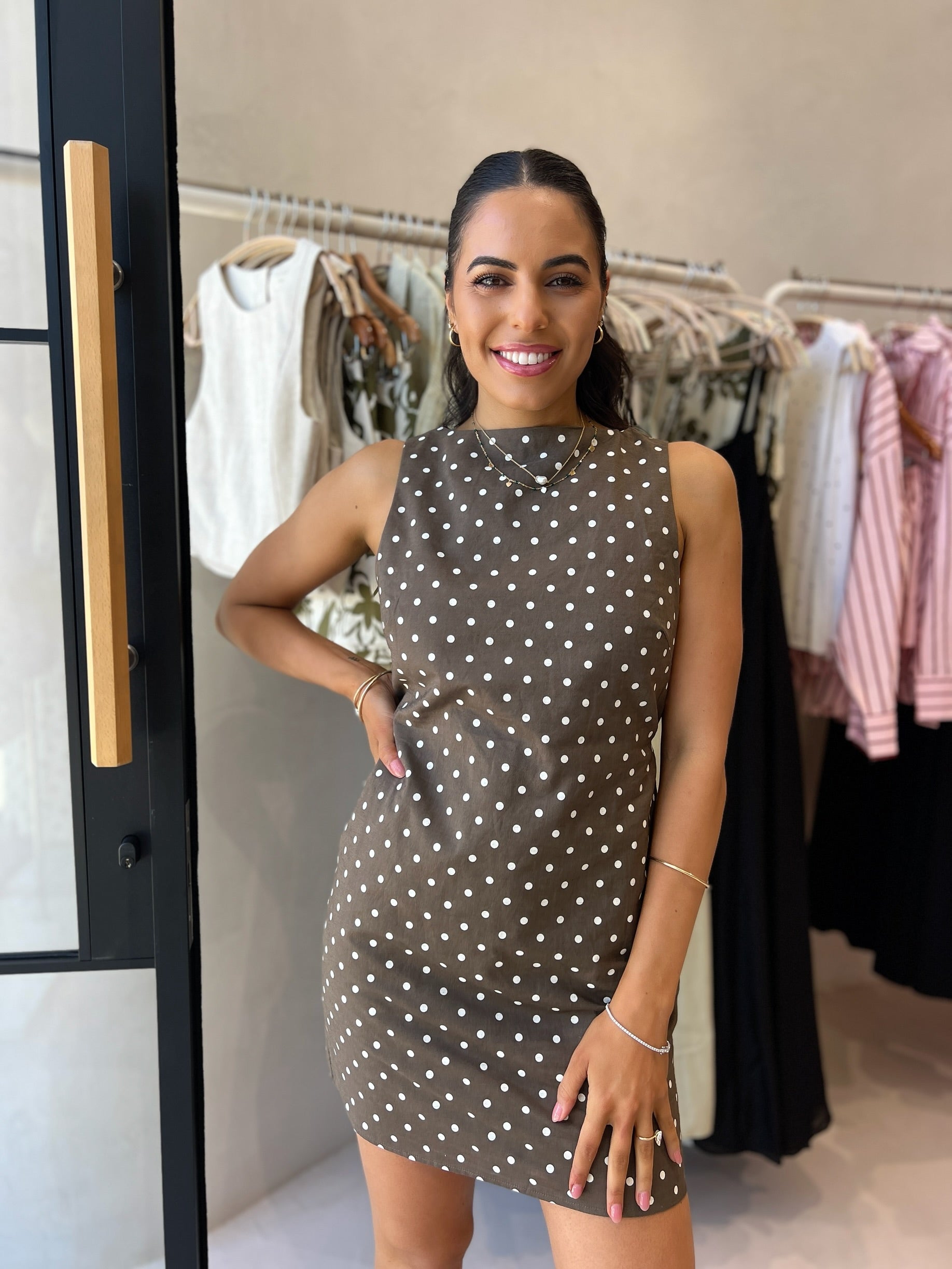 This MVN Polka Dot Mini Dress makes it a great wardobe staple for all the seasons. It's simple silhouette and polka dot print make it timeless and sophisticated if you're unsure on what to wear. It's versaility lends itself to be worn straight from the office and out after for a dinner date, just swap out for some staple jewellery and strappy heels to finish off the look.