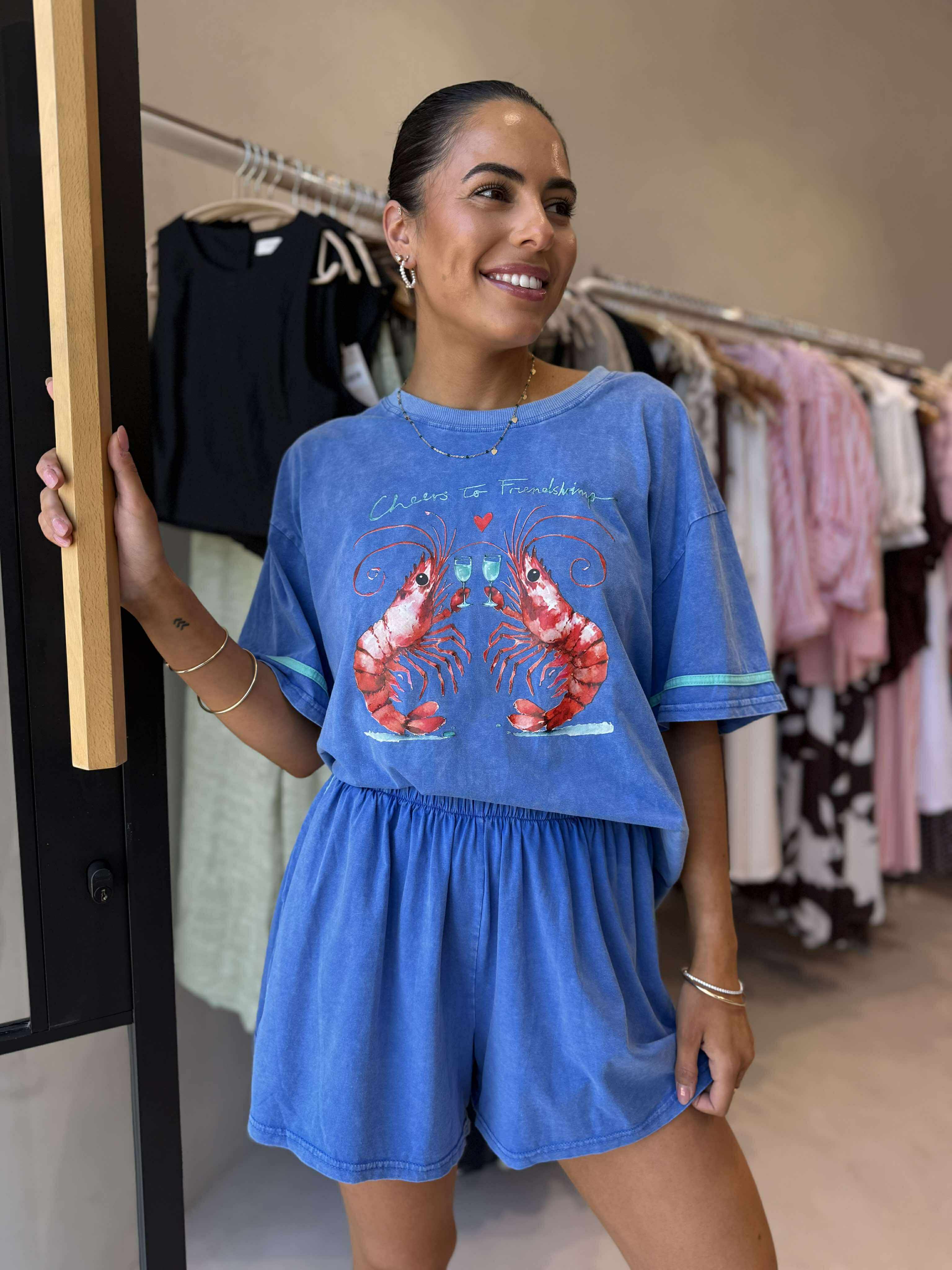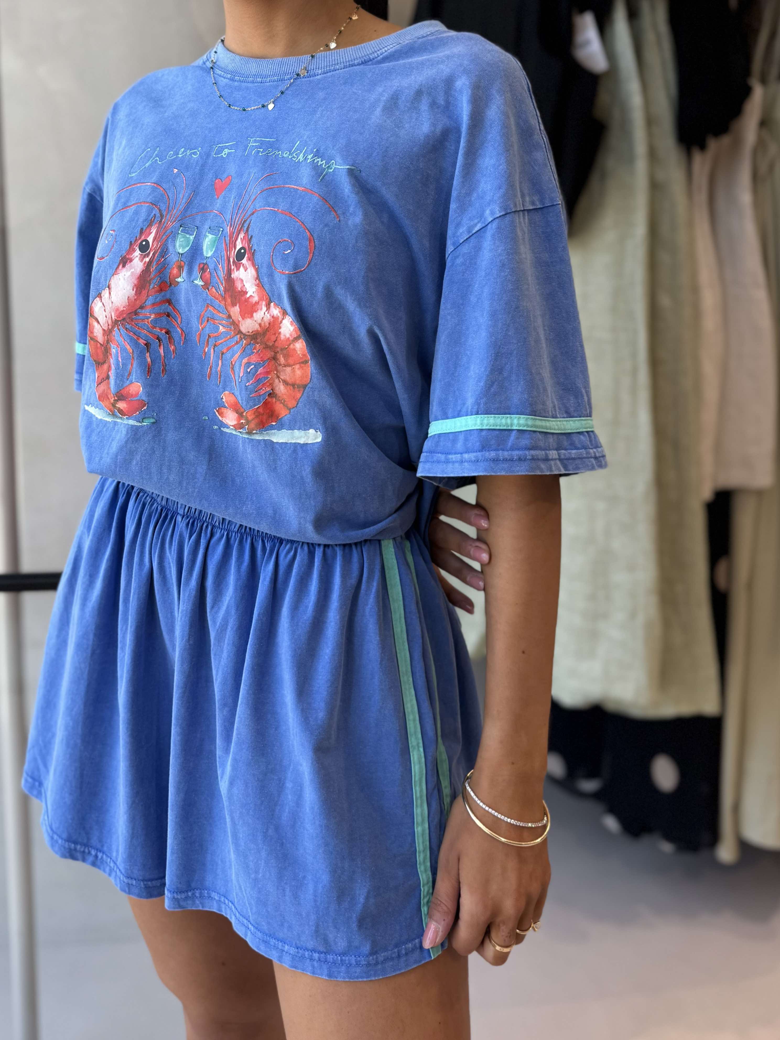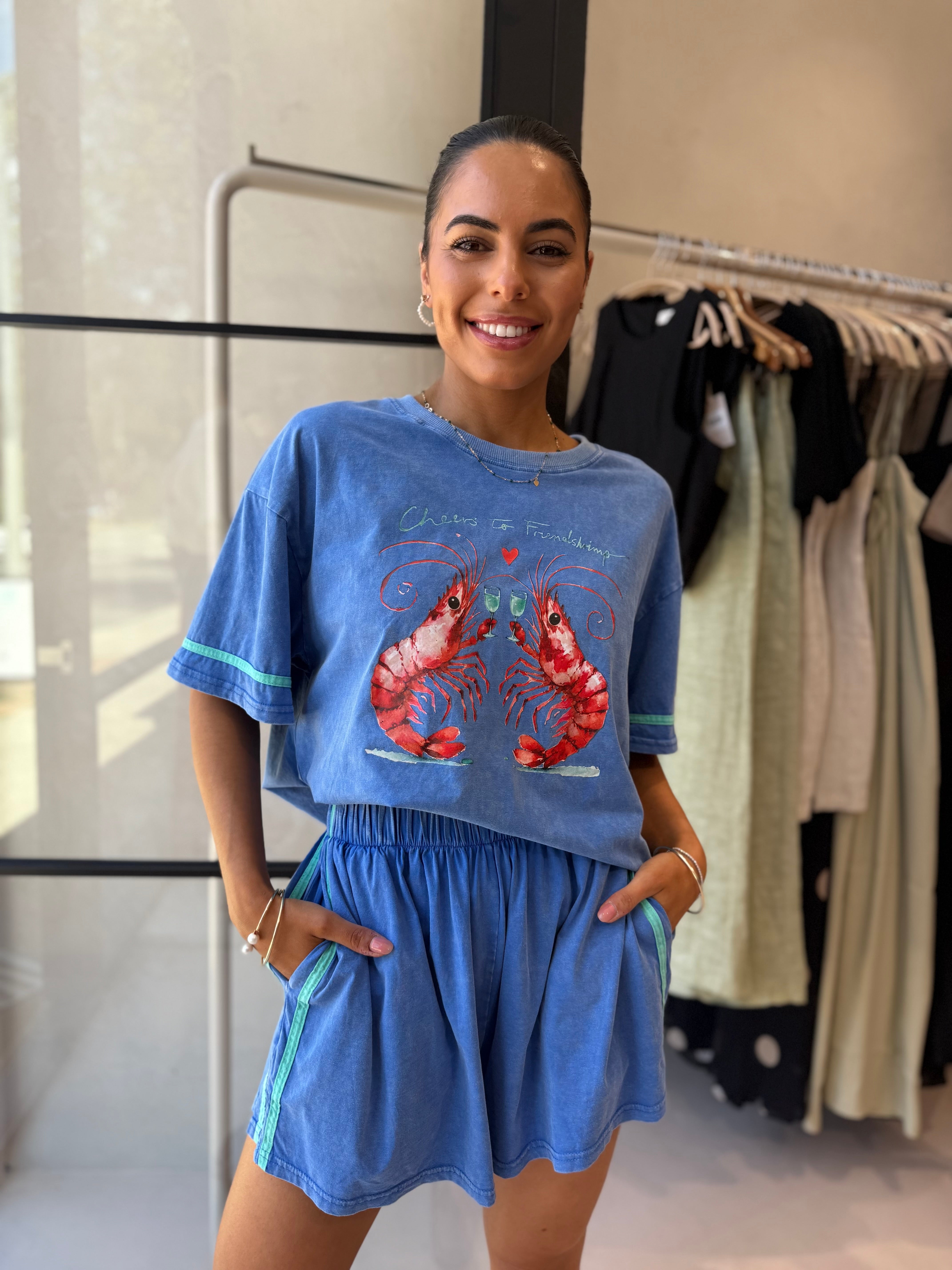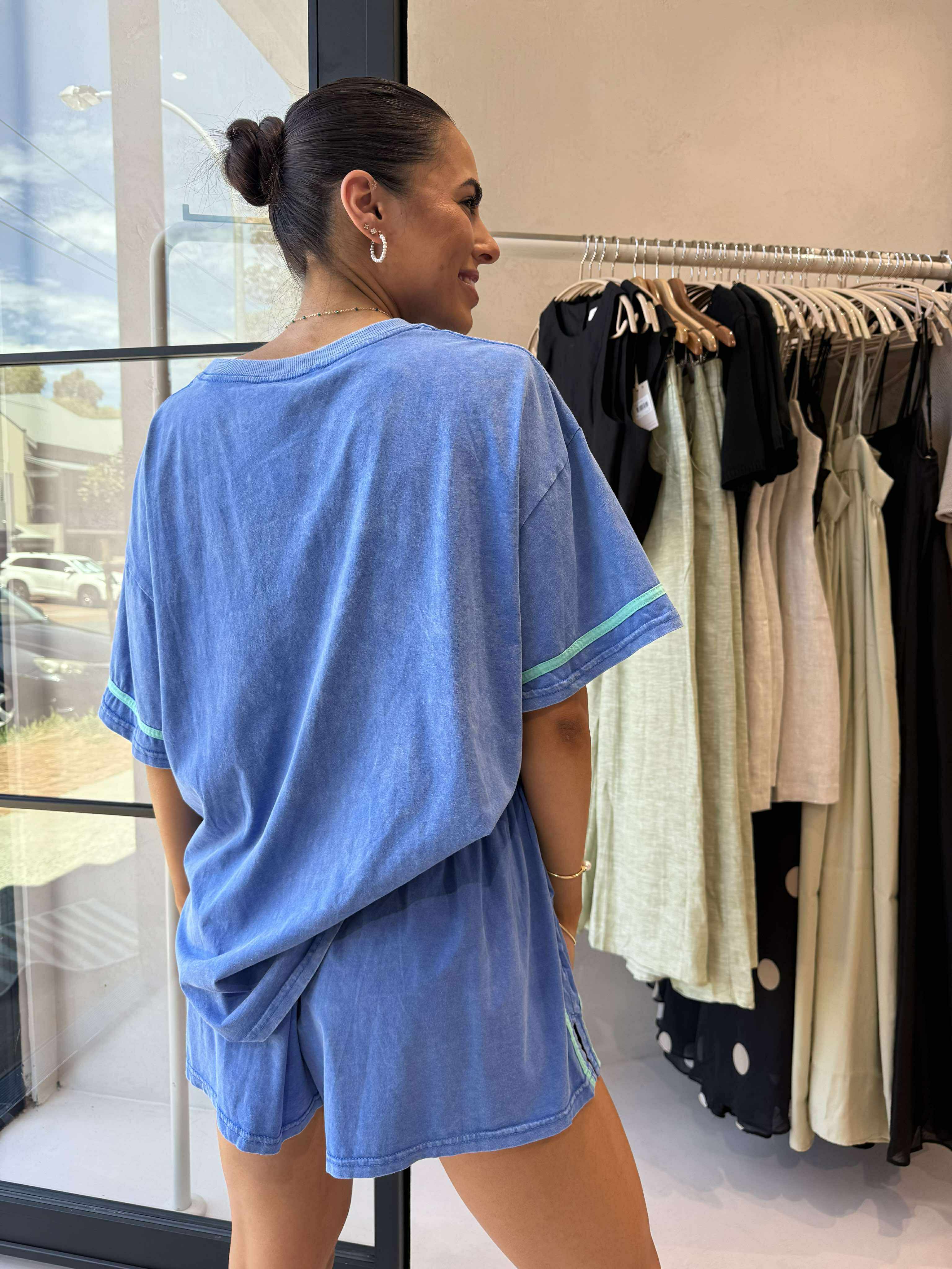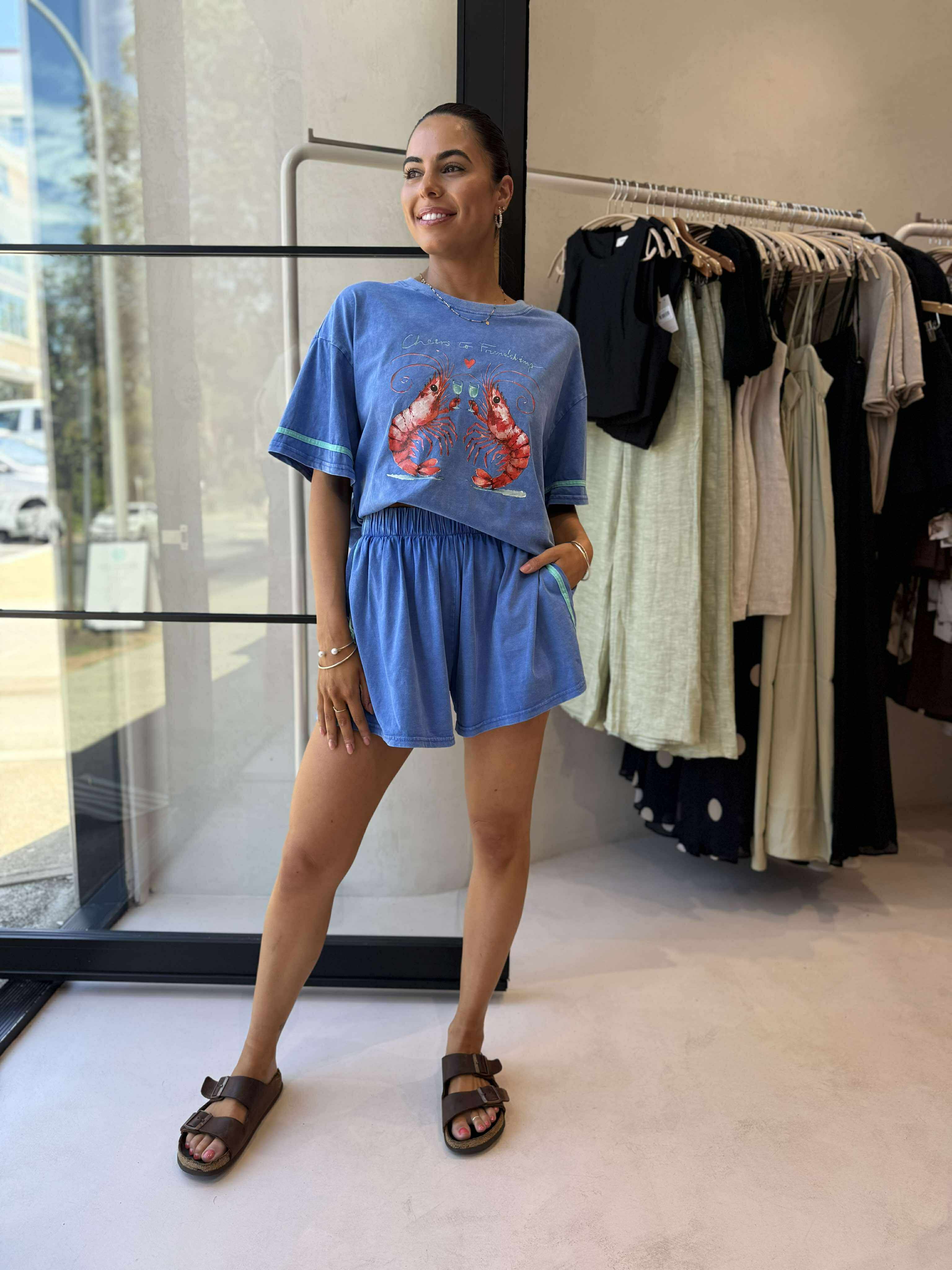 Keep it cool and comfy with this vibrant blue shirt and shorts set! Featuring bold contrast green stripes on the sleeves and down the sides of the shorts, this set adds a fun pop of colour. The relaxed-fit shirt includes a playful ocean graphic on the front, perfect for sunny days and seaside vibes. The shorts come with an elasticated waistband and handy pockets for easy, everyday wear. Ideal for play, lounging, or casual outings!