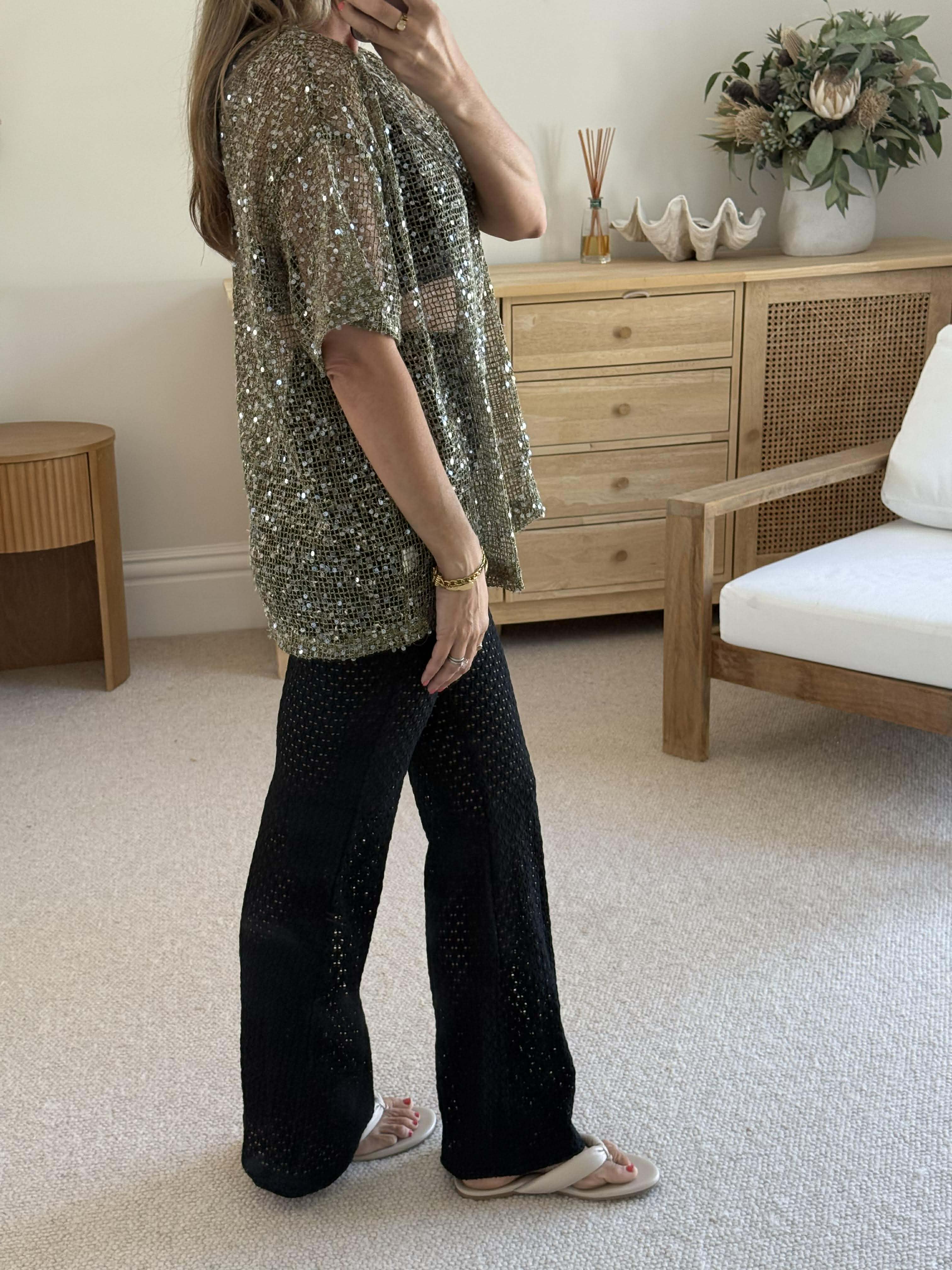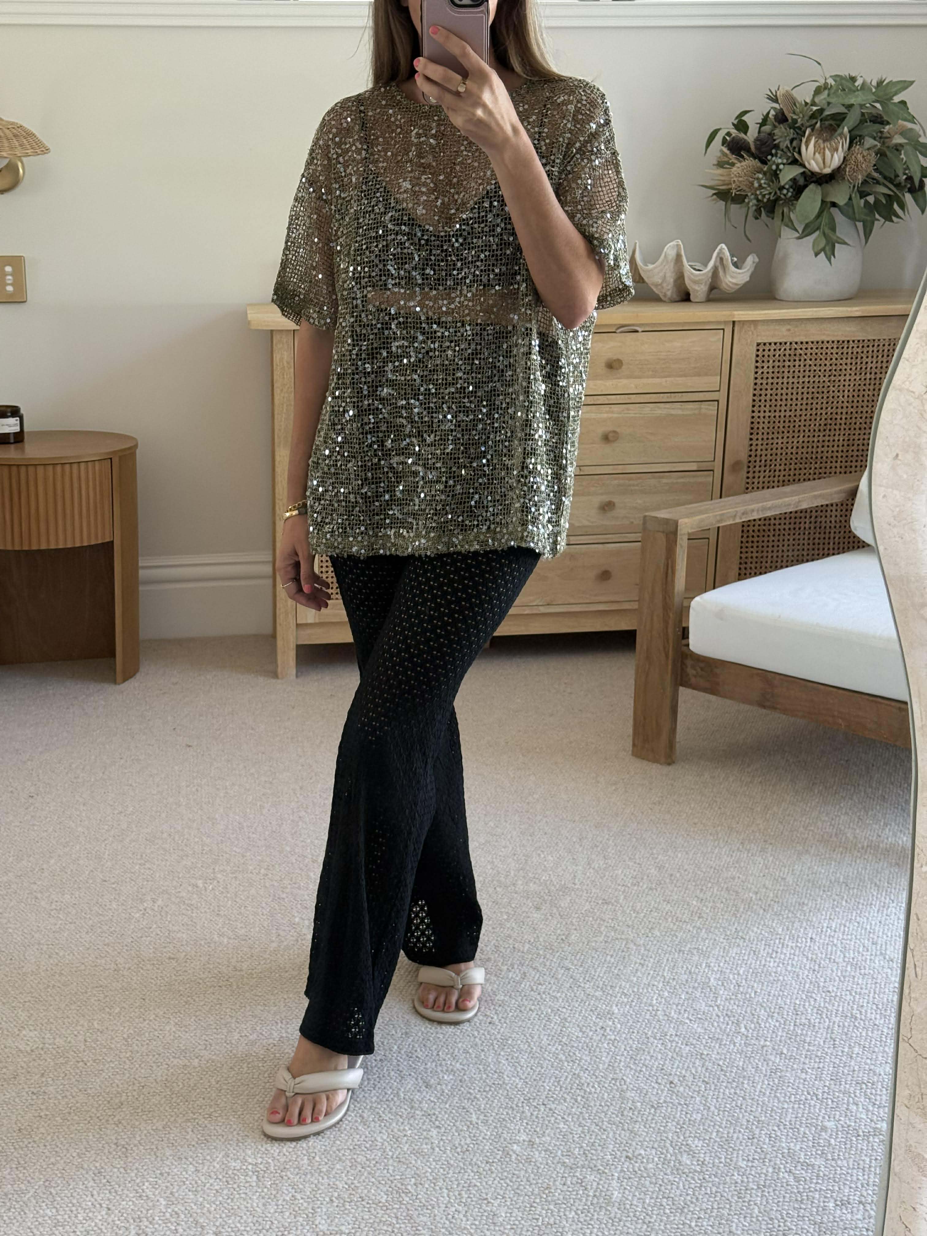 SEQUIN OVERSIZED TEE - KHAKI