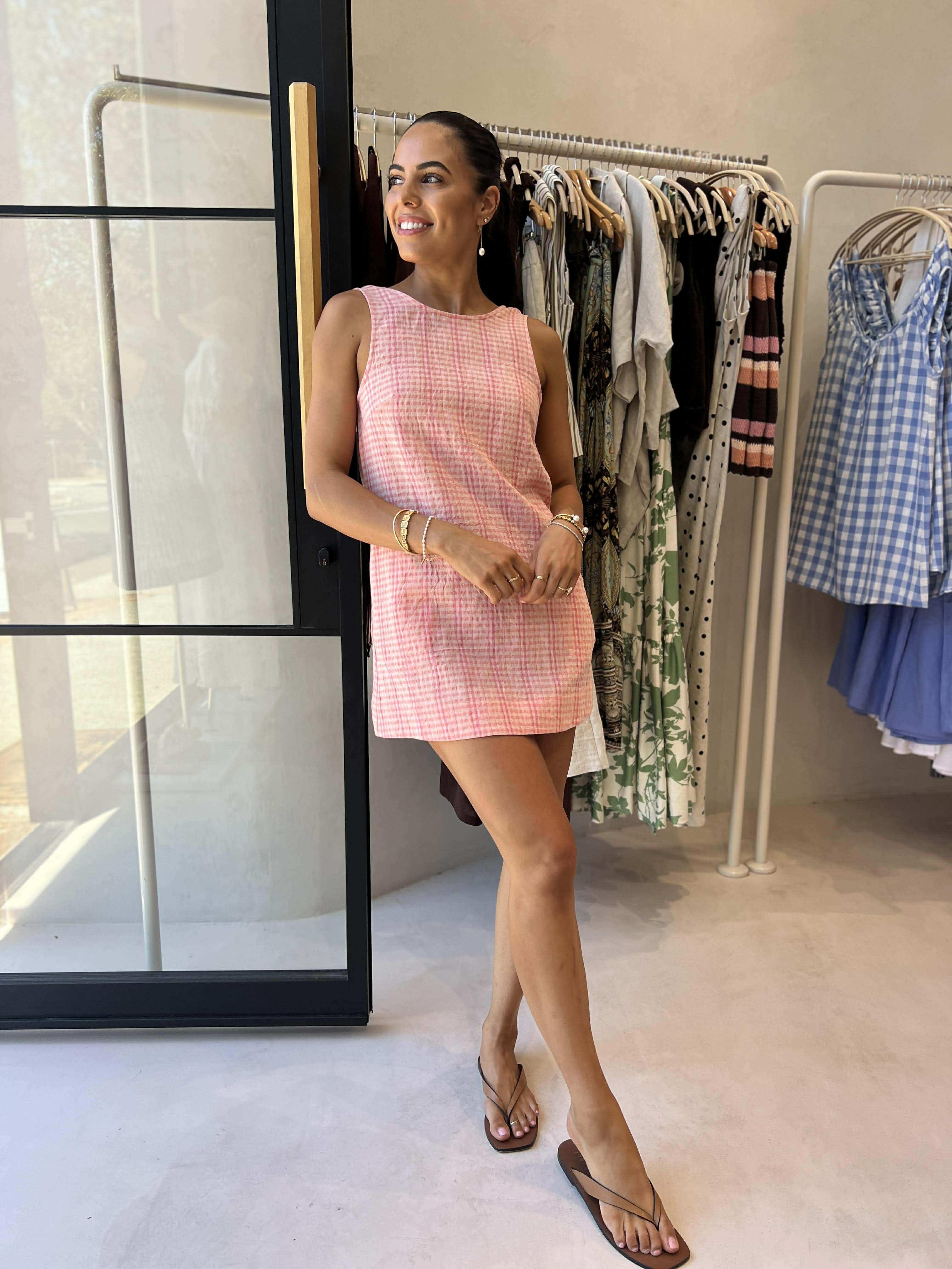 SERENA MINI DRESS - PINK CHECK