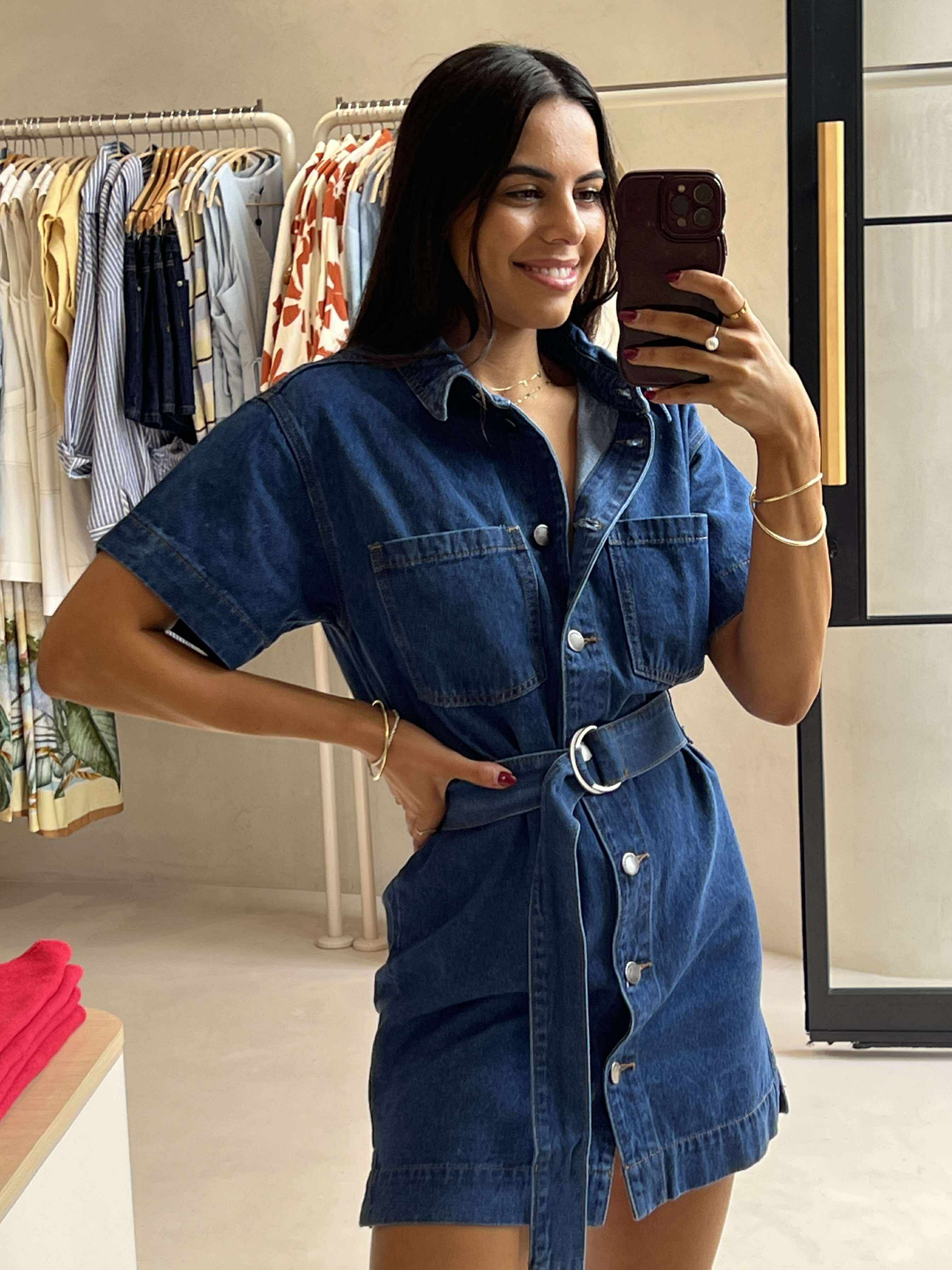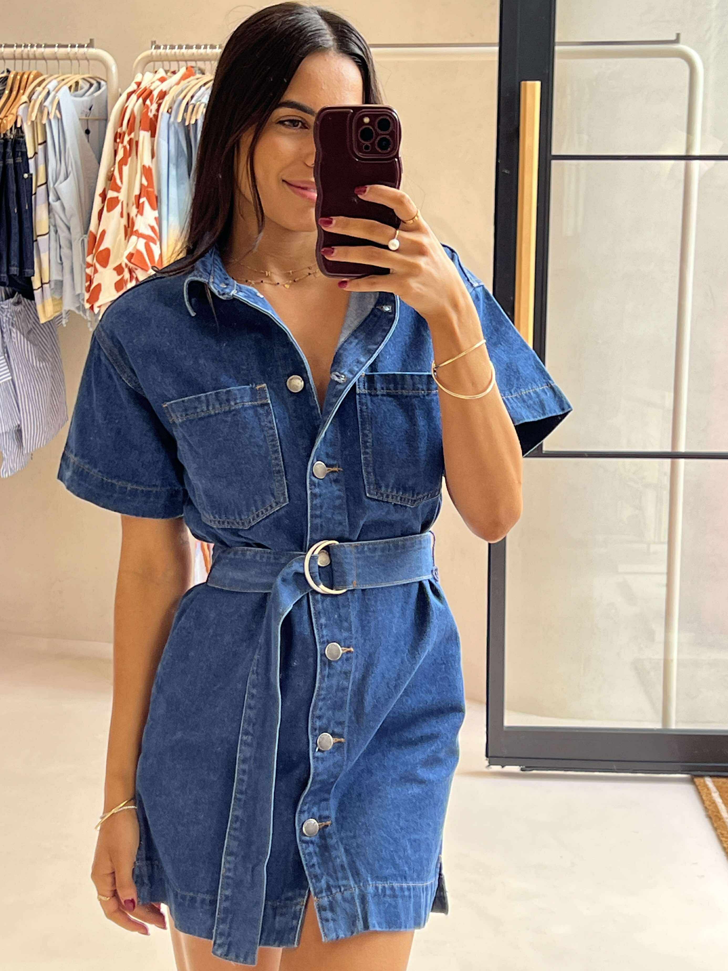Featuring a collared neckline and button-down front, it offers easy wear and a timeless look. The adjustable belt lets you customize the fit for comfort and flattering shape. Perfect for casual outings or layering, this mini dress brings effortless charm to your wardrobe.