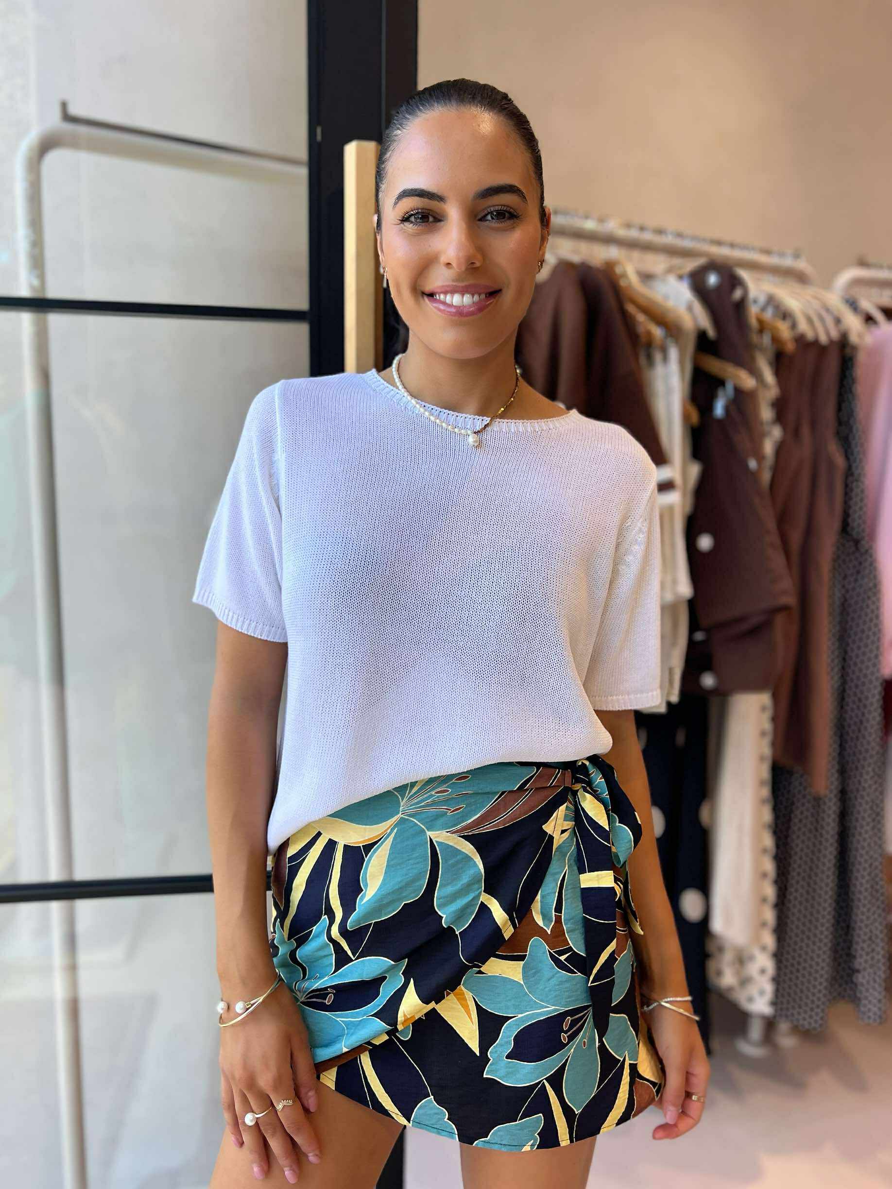 A timeless silhouette reimagined, the Tanzi Wrap Skirt features an exclusive Ezra Blu design for Frankii. Crafted from a soft viscose/nylon blend, it drapes beautifully with a flattering wrap detail and an invisible side zip for a seamless finish.