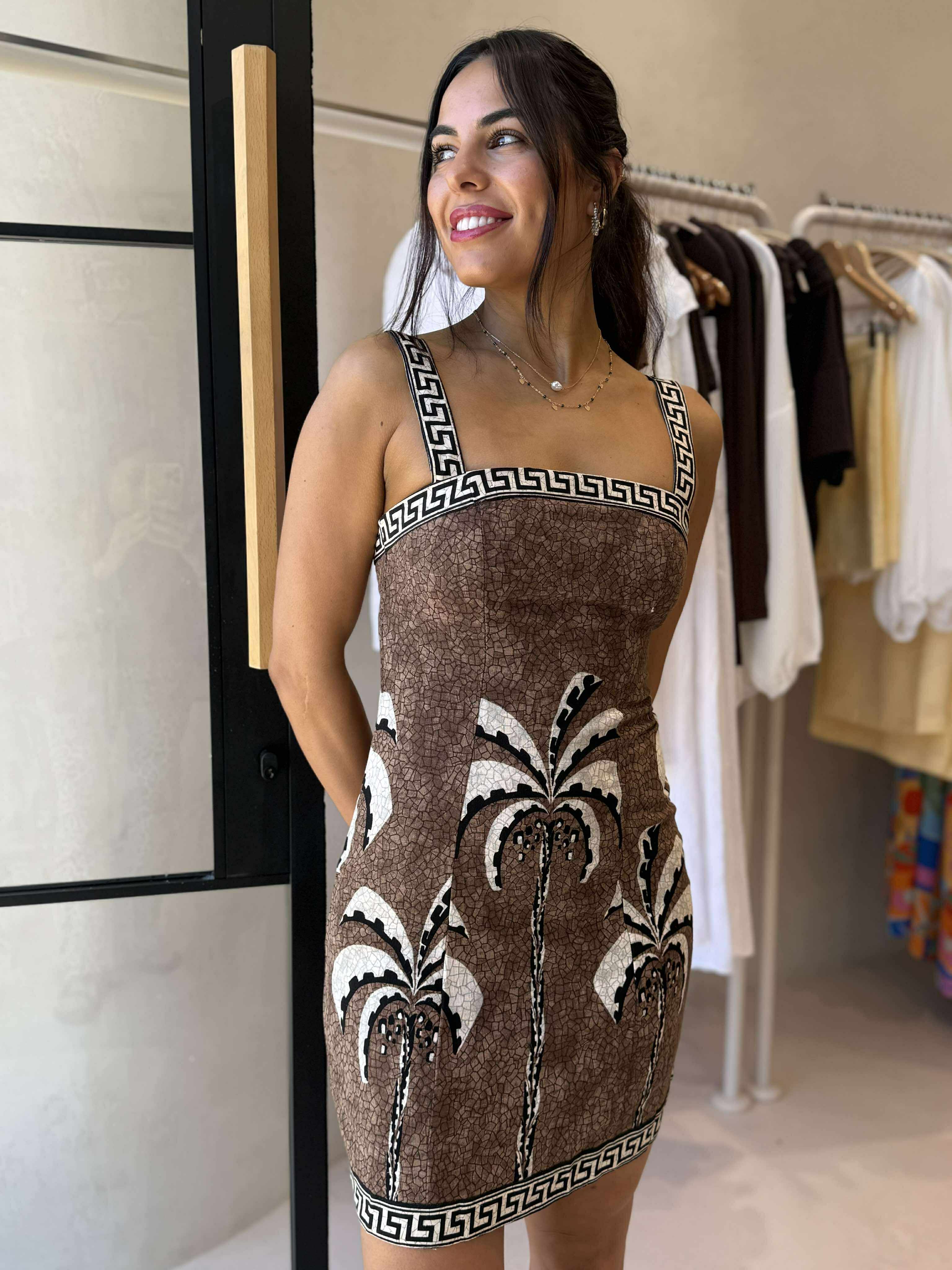 Turn heads in this stunning mini dress featuring a rich brown pattern and eye-catching contrast panels on the chest and bottom hem. Designed with thick sleeves for a bold silhouette and fully lined for a comfortable fit, this dress blends style and structure effortlessly. Perfect for day-to-night wear.