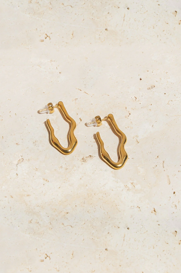 Elevate your accessory collection with these Wave Hoop Earrings in gold. Expertly crafted, their fluid wave design adds a modern, elegant touch to any outfit.