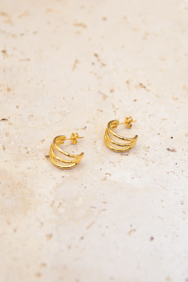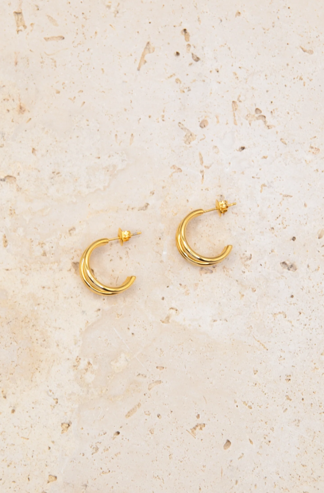 The Yvette Hoop Earrings in gold make a bold statement with their striking design. Expertly crafted to combine modern style and timeless elegance, these earrings enhance any outfit with confidence and sophistication.