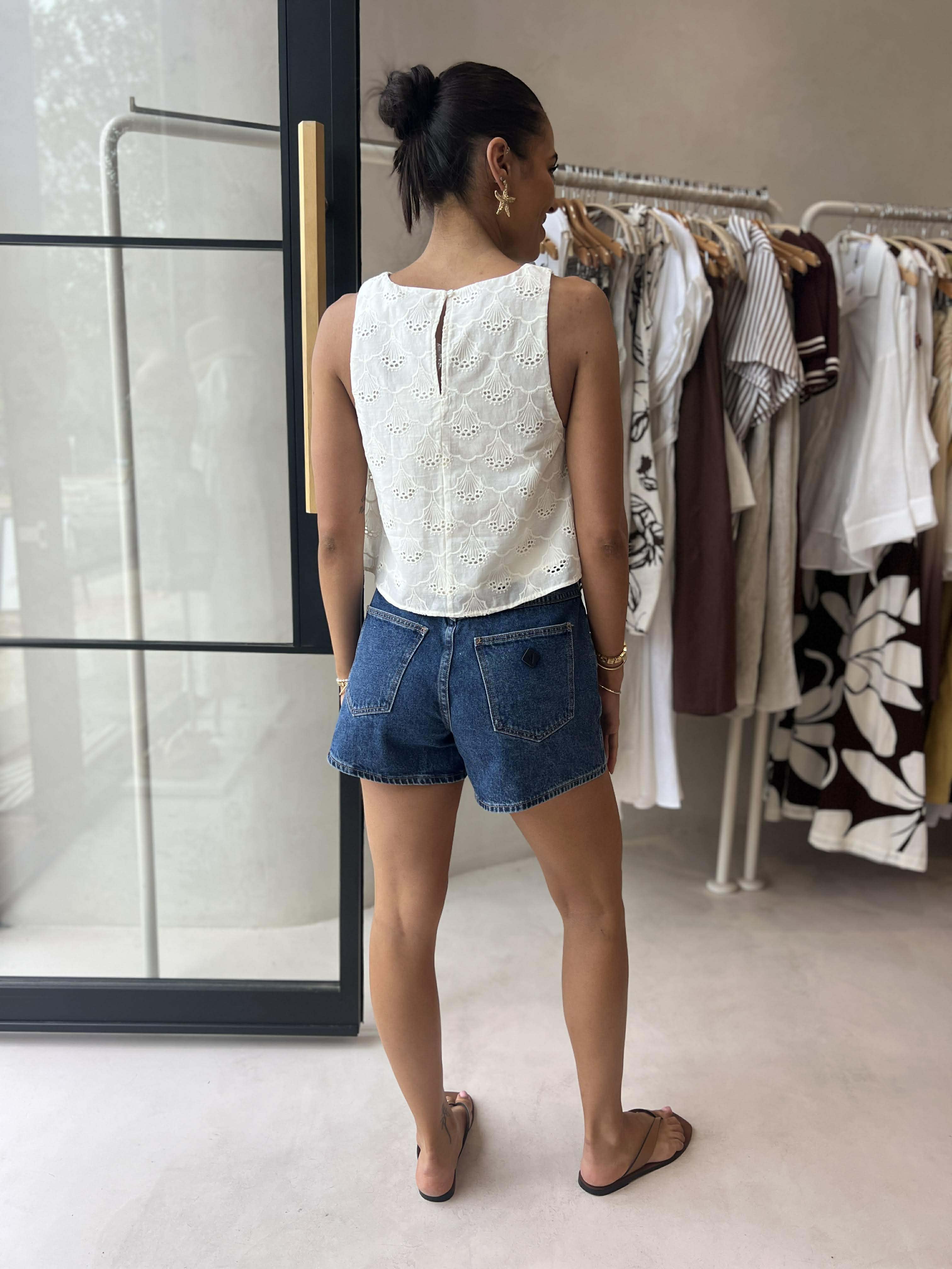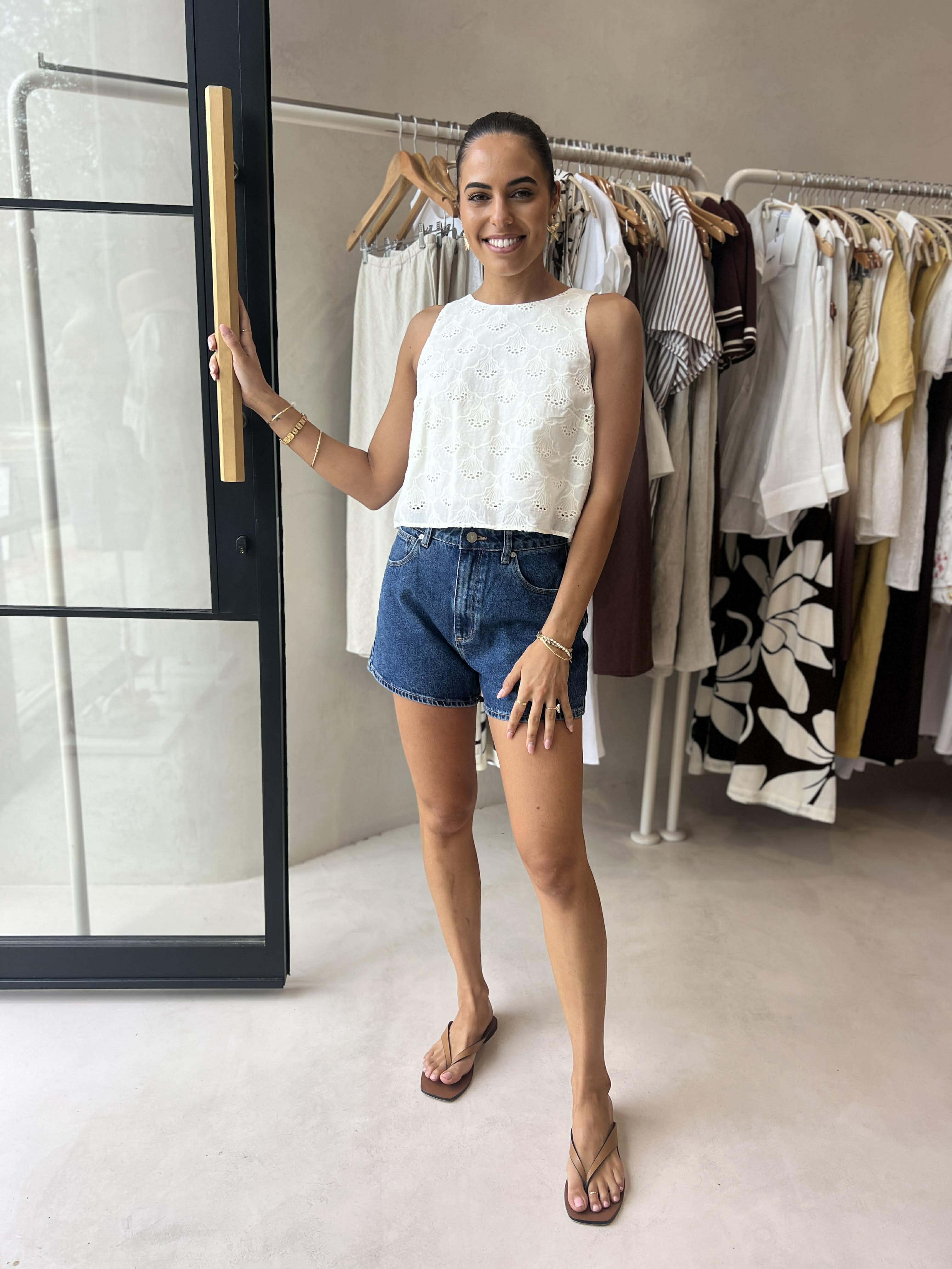 The Zimmy Broderie Tank is feminine, easy and endlessly versatile. Made in beautiful broderie fabric with a keyhole back, it’s lined for comfort. The perfect top for fresh, effortless style.